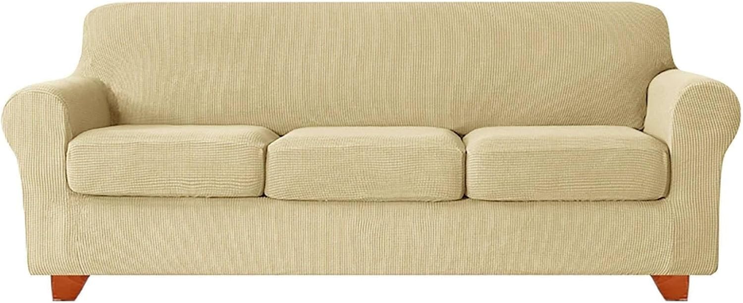 High StretchMade from 95% polyester and 5% spandex. Featuring with soft,durable and stretchy,the elastic couch covers are ready made to fit various types of sofas: T cushion sofa,leather sofa,cloth sofa,extra large sofa.Complete ProtectionThe dog pets couch protectors are providing your sofa a 360-degree full coverage which can protect your sofa completely,every side. This furniture protector can not only protect your couch,but can make your sofa become a new centerpiece in your living room.Stay in PlaceThe furniture slipcover are highly stretchy and cover your sofa firmly. Universal sofa protector cover with anti-slip foam rods and elastic bands,saving your time to smoothing and adjusting slip covers everyday.Pet FriendlyThe fabrics of our duty slip covers are all environmental friendly. A must have couch cover for family with pets,decor your living room and protect your sofa from pets bite and scratch.Measuring GuideLarge size:length between 185-235cm/72"-92"Medium size:length between 145-178cm/57"-70"Small size:length between 185-235cm/72"-92"NoticeDue to the light and screen difference,the item's color may be slightly different from the pictures. Please understand. Make sure you don't mind before you bid.Please allow 1-2cm differences due to manual measurement.