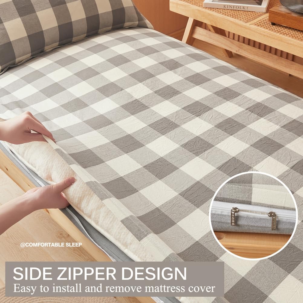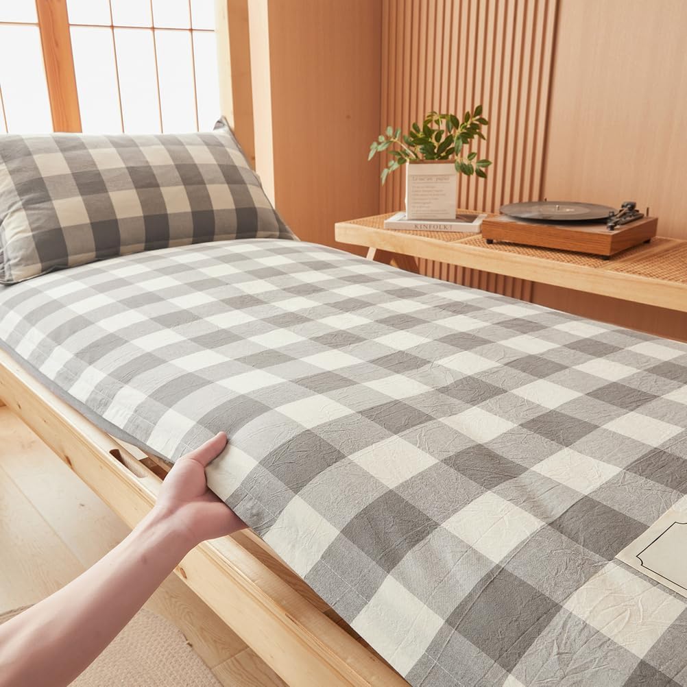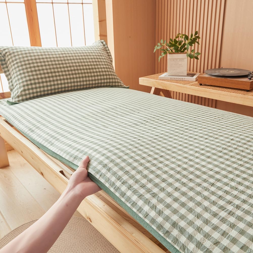 Specially designed futon mattress cover for student dormitoriesCompletely wrap your mattressMade of washed cotton fabricComfortable, soft and breathableExtend the lifespan of your mattressFabric:Washed cotton fabricFeatures:Comfortable,DustproofPrinting and dyeing process: reactive printing and dyeingWhether it can be machine washed: Can be machine washedCan accommodate mattress thickness: less than 15cm(5.9in)Color:A,B,C,D,E,F,G,H,ISize:90x200cm(35*79in)120x200cm(47*79in)150x200cm(59*79in)180x200cm(71*79in)Package includes:Futon Mattress protector*1 (excluding pillowcase and mattress)notes:1. Please allow 1-3cm error due to manual measurement.2. Due to different monitors, there may be slight color differences. We hope you can understand.