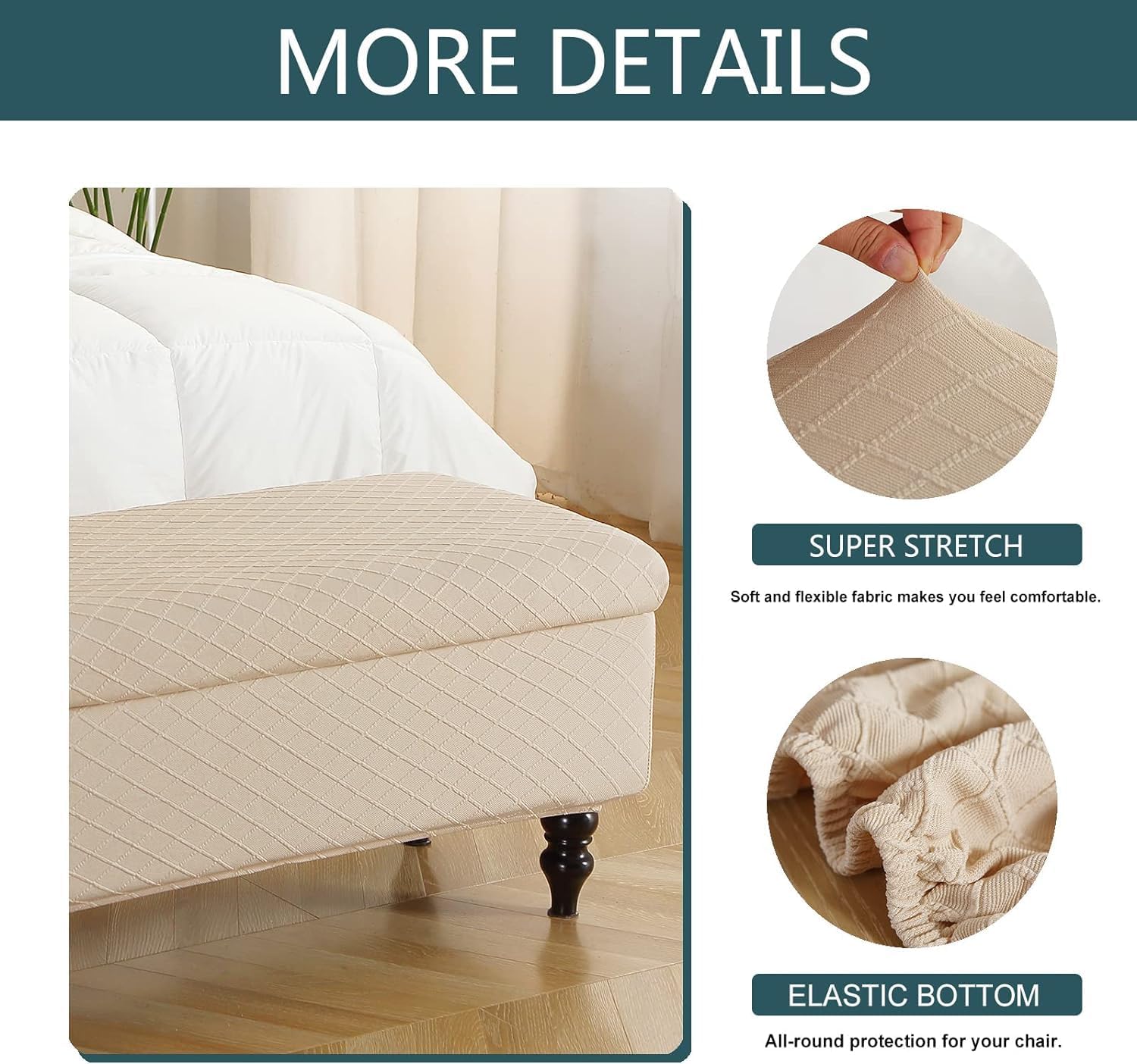 Ottoman slipcover is made from polyester and spandex fabric, feature high stretchy and durability, soft, thick and comfortable.This ottoman cover has diamond-shaped patterns, simple design and fine workmanship to make your home life more comfortable.Our rectangle ottoman covers could protect your ottoman from daily scuffs, wear and tear, stains, etc, great choice for homes with children and pets. Encase your footrest with this cover, and you'll experience a noticeable softness when you kick up your feet during your me-time.