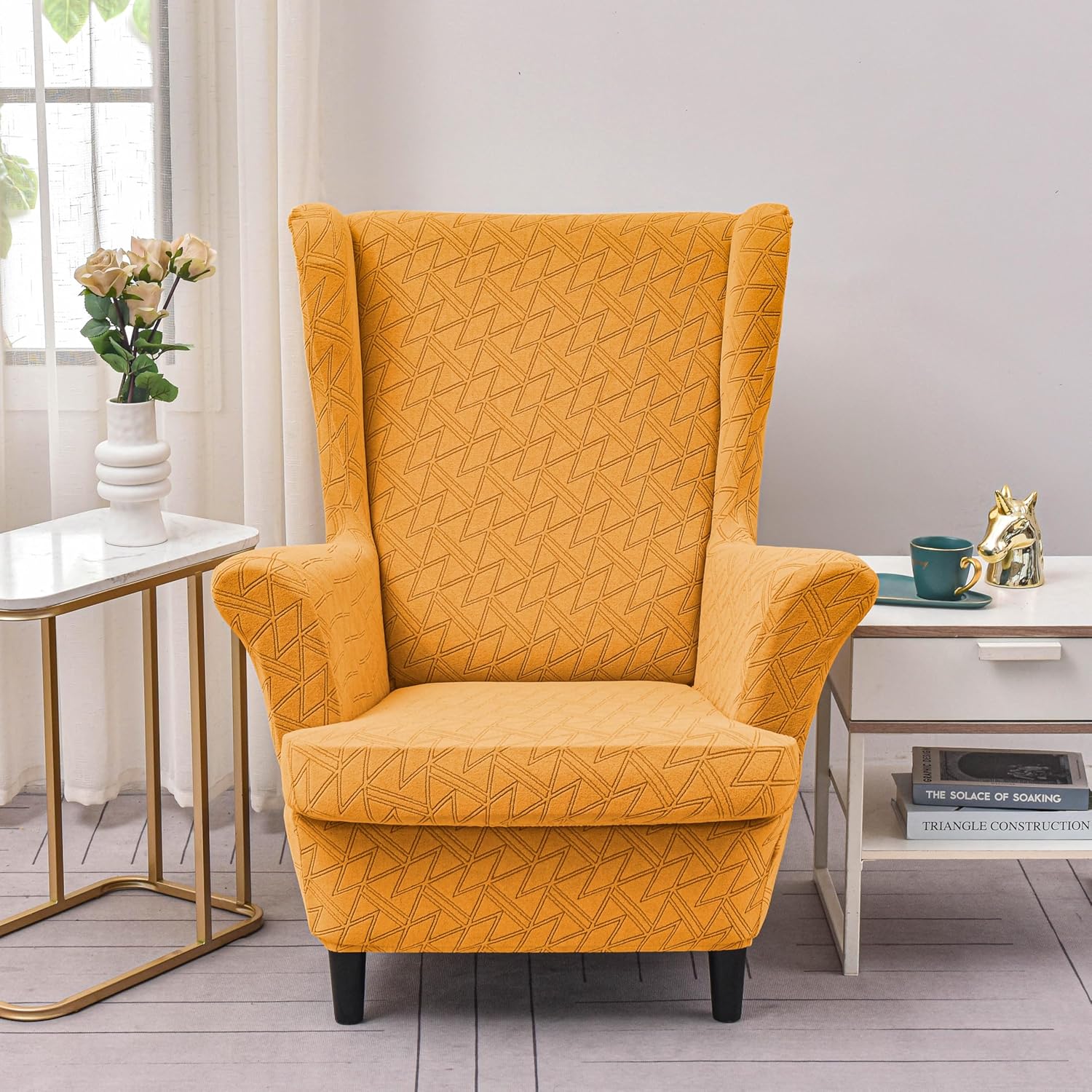 Features :The wing chair cover will not only effectively protect your chair from stains, wear and tear, but also give your chair a new look. Particularly suitable for most families with children and pets.Easy To Install and remove: 2 in 1 removable wing chair cover, soft and stretchy, Installs easily and quickly in minutes. (refer to online photo sales tips), soft to the touch, update your decor with the wingback chair cover.Features :Material: 92% polyester, 8% elastane.Weight: 0.86 kg.Color: light gray/gray/coffee/beige/wine red/black/green/pinkSuitable Size:1. Chair height: 80-100cm.2. Chair side width: 60-70cm.3. Front seat length: 65-85cm.4. Height from bottom of chair to seat: 14 to 18 cm.5. Leaf width: 8 to 11 inches / 22 to 28 cm6. Aerodynamic surface height: 45-55 cm.Wingback chair covers are very Easy To maintain and disassemble. Hand or machine wash.Machine washable on gentle cycle in cold water, do not bleach. Because the cover is elastic, do not iron. If you iron it, it will lose some elasticity.Package Contents:1 x Wingback Chair Cover1 cushion cover.