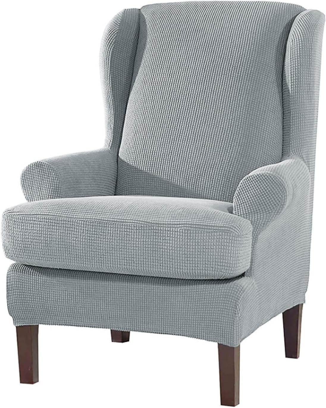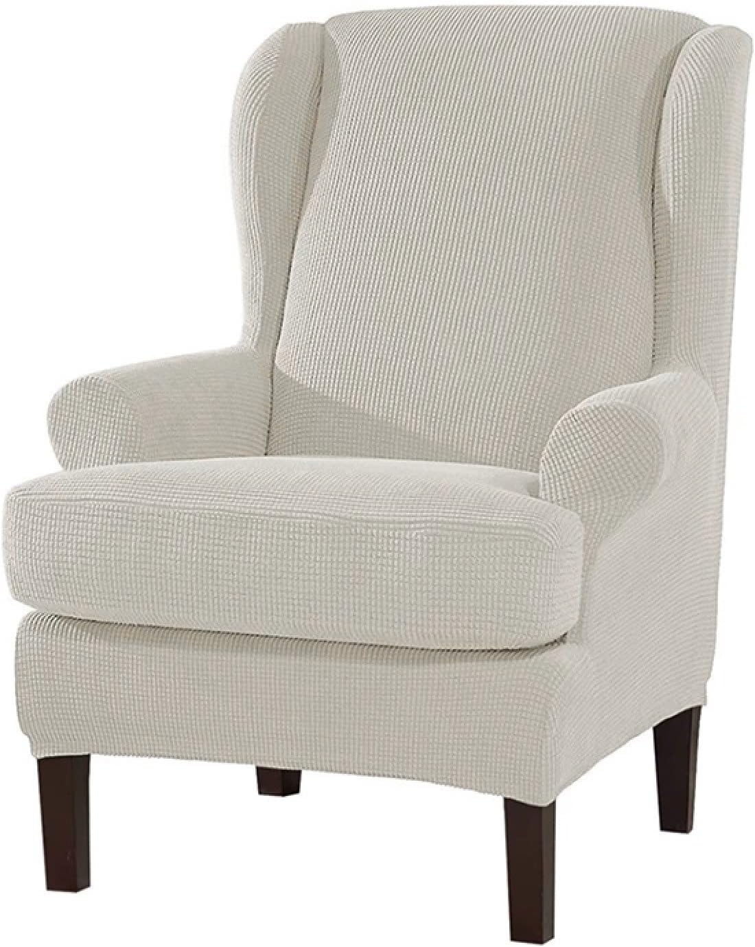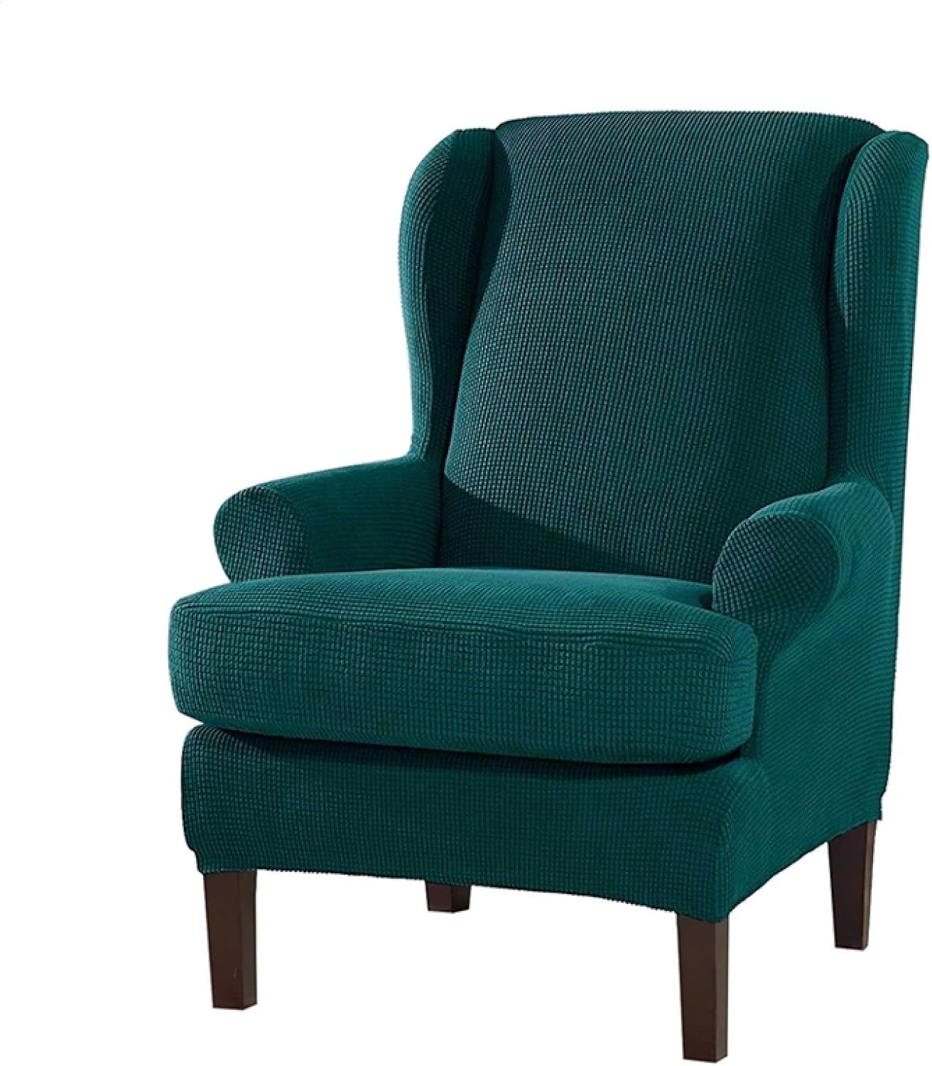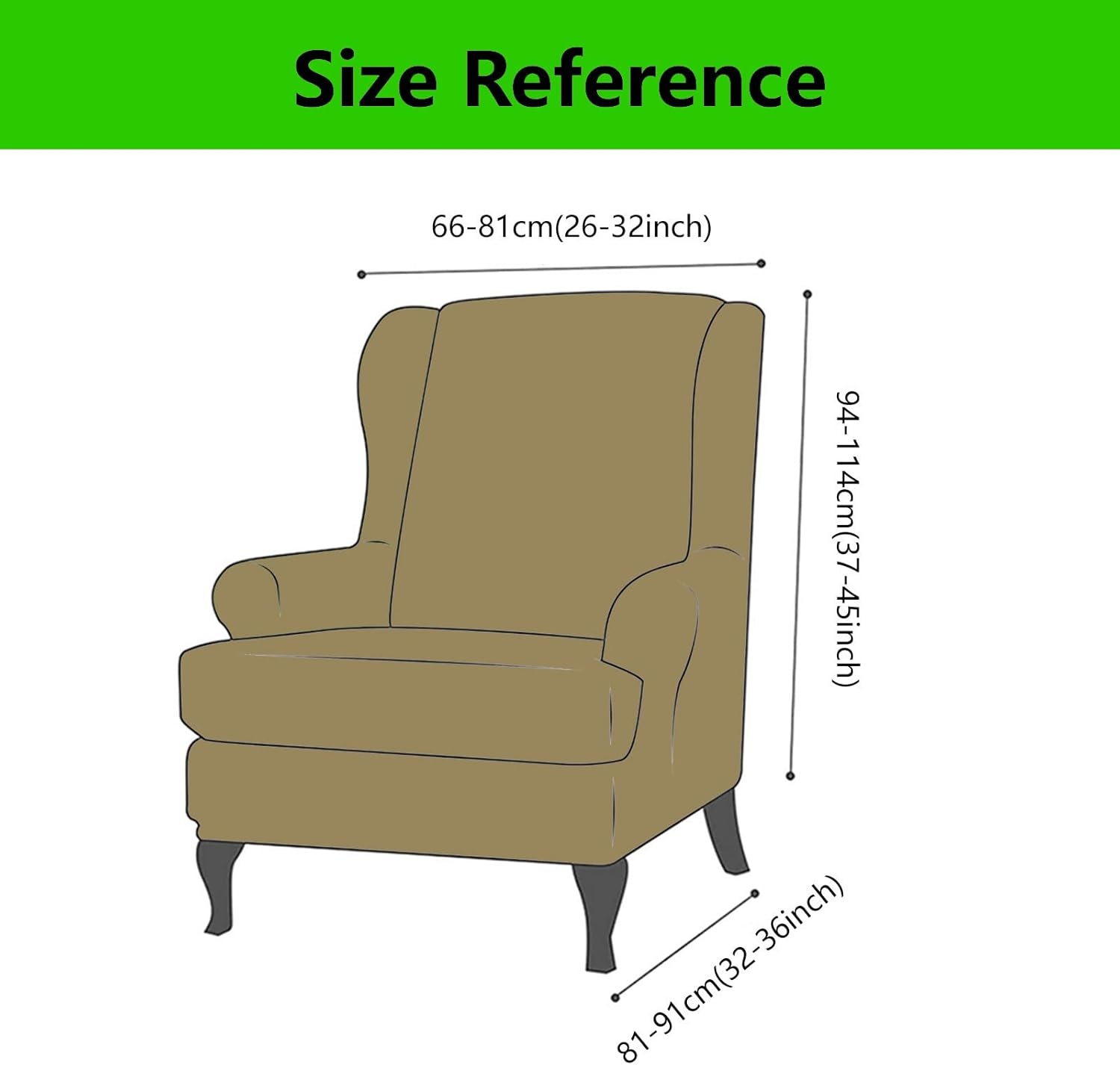 ( Please measure your wing chair before buying and compare it to our size chart )match different home style, decorate the furniture and give your living room and bedroom a fresh lookHigh quality stretchy fabric, soft and comfortable, easy to stretch, not easy to slideProtect your wing chair and furniture from daily wear and tear, spills and stains2 piece wingback chair slipcover is easy to install and take off,a great partner for household lifeVarious colors are prepared, you can choose the color you like to coverEasy to install and clean. Machine washable (cold), do not iron or bleach, low dryingPackage Include: Wing Chair Cover*1pc; Cushion Cover*1pcMaterial: Polyester100% Brand new & comfortableAdvantage: Easy to install and remove, provide a full protection to your wingback chair, perfect for family with pets and childernNotice:If you have any problem, please feel free to contact with us, we will do our best to solve the problem and give you customers good service.
