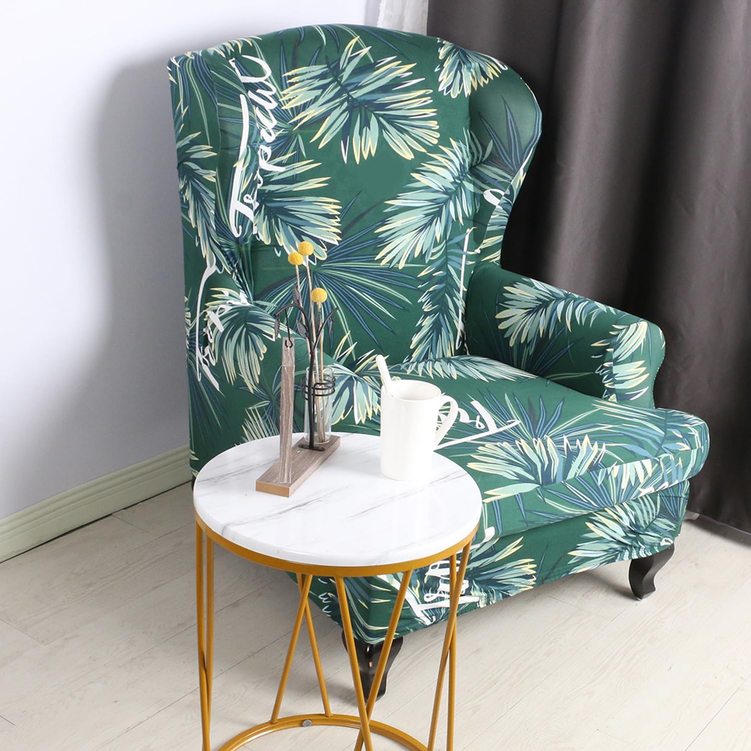 High elasticity wing chair coverPerfectly wrap your wing chairProtect the chair from stains and oil stainsAdd a fashionable atmosphere to your homeFabric:92% polyester+8% spandexFeatures: Soft and dustproofWhether it is foldable: portable and foldableSeason of use: all seasonsWhether it can be machine washed: Can be machine washedcolor:A,B,C,D,E,F,G,H,I,J,KPackage includes:2pcs:wingback chair cover*1+seat cushion cover*1(not including chair)Notes:Due to the light and screen setting difference, the item's color may be slightly different from the pictures.Please allow slight dimension difference due to different manual measurement.