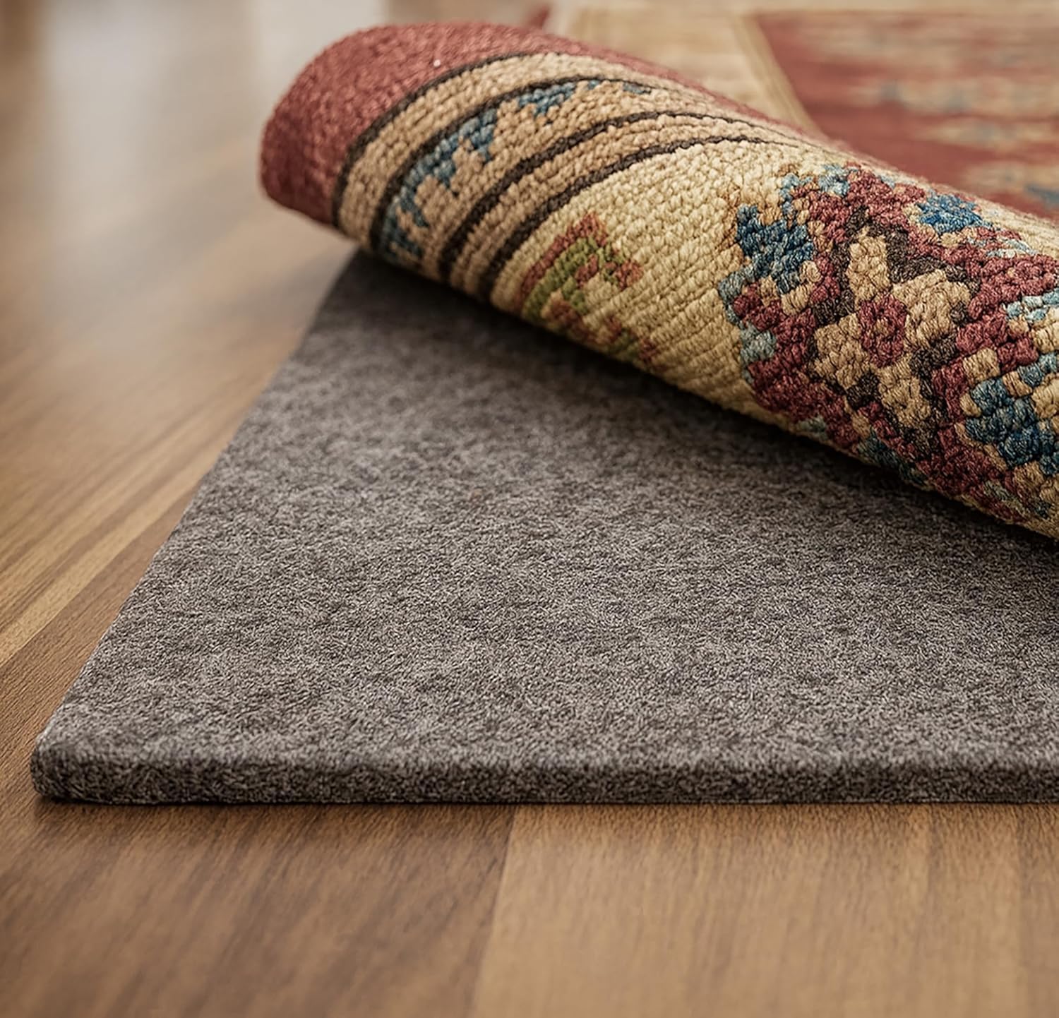 Compact Pad. Serious Grip. Meet the SureBase Premium Rug Pad—your smart solution for anchoring rugs with comfort, grip, and floor protection built in. Designed to enhance safety and softness in everyday spaces, this pad delivers a simple upgrade underfoot wherever you place it. Comfort You Can Feel. Grip You Can Trust. Beneath your rug, the SureBase pad adds low-profile cushioning for a softer step. On the underside, a rubber backing helps keep your rug securely in place—reducing slipping, bunching, and corner curling on hardwood, tile, vinyl, or laminate. Protects from the Bottom Up By creating a breathable, shock-absorbing layer between rug and floor, this pad helps reduce wear, trap dust, and minimize scratches or pressure marks. It protects both your rug and the flooring beneath it. Safe for Every Room Crafted from odorless, eco-friendly polyester and rubber, this rug pad is a dependable choice for nurseries, kitchens, bedrooms, hallways, and other active spaces throughout the home. Easy to Maintain Keep it fresh with a quick spot clean using a foam upholstery cleaner or water-based shampoo—no complicated care routine required. Versatile Performance for Everyday Living Whether you’re securing an entryway rug, adding stability to a hallway runner, or giving a kitchen mat a softer feel, SureBase delivers premium performance in a wide range of spaces.