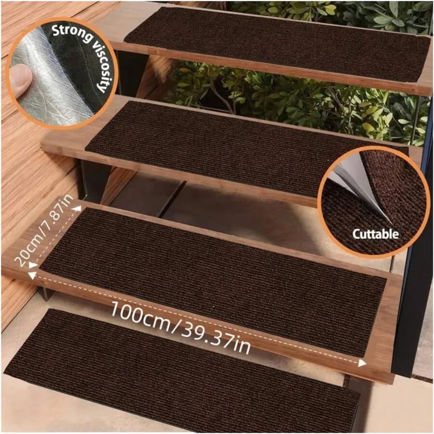 These stair sticky pads offer softness, quietness, and stabilityFits most indoor stairs, and if needed, you can easily cut the carpet stair tread with scissors to fit special sizesEASY INSTALL,Throw them in the washing machine or vacuum for easy cleaningBacking Material: Polyvinyl Chloride (PVC)Pile Type: Cut PileWashing Method: Machine WashPattern Type: Solid ColorMaterial: PVCKindly Tip :1. Please be reminded that due lighting effects, monitor's brightness/contrast etc,there could be some slight differencesin the colour tone of the website's photo and the actual item.2. Item Measure by hand, it could be 1-3cm different, your kind understanding will be much appreciate.