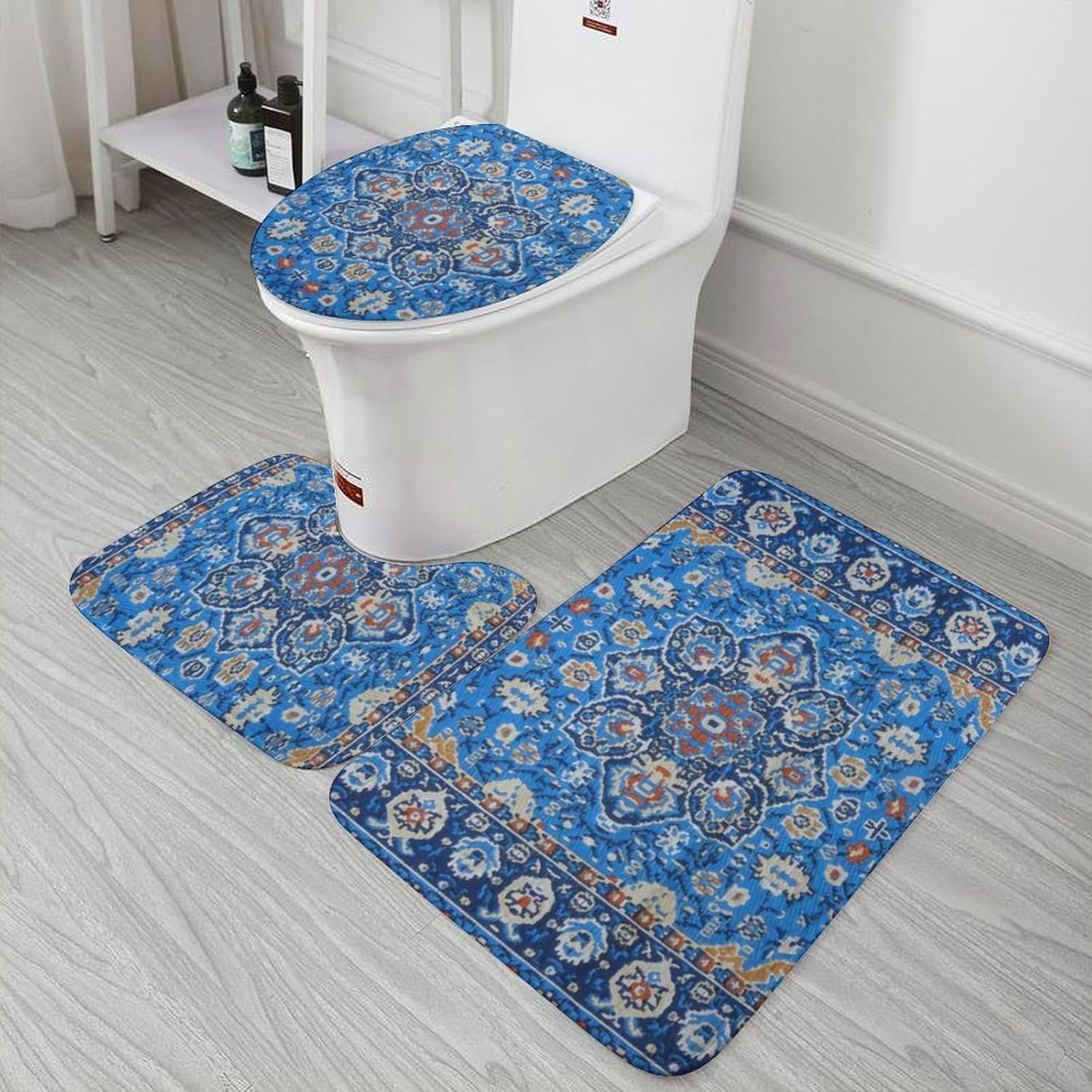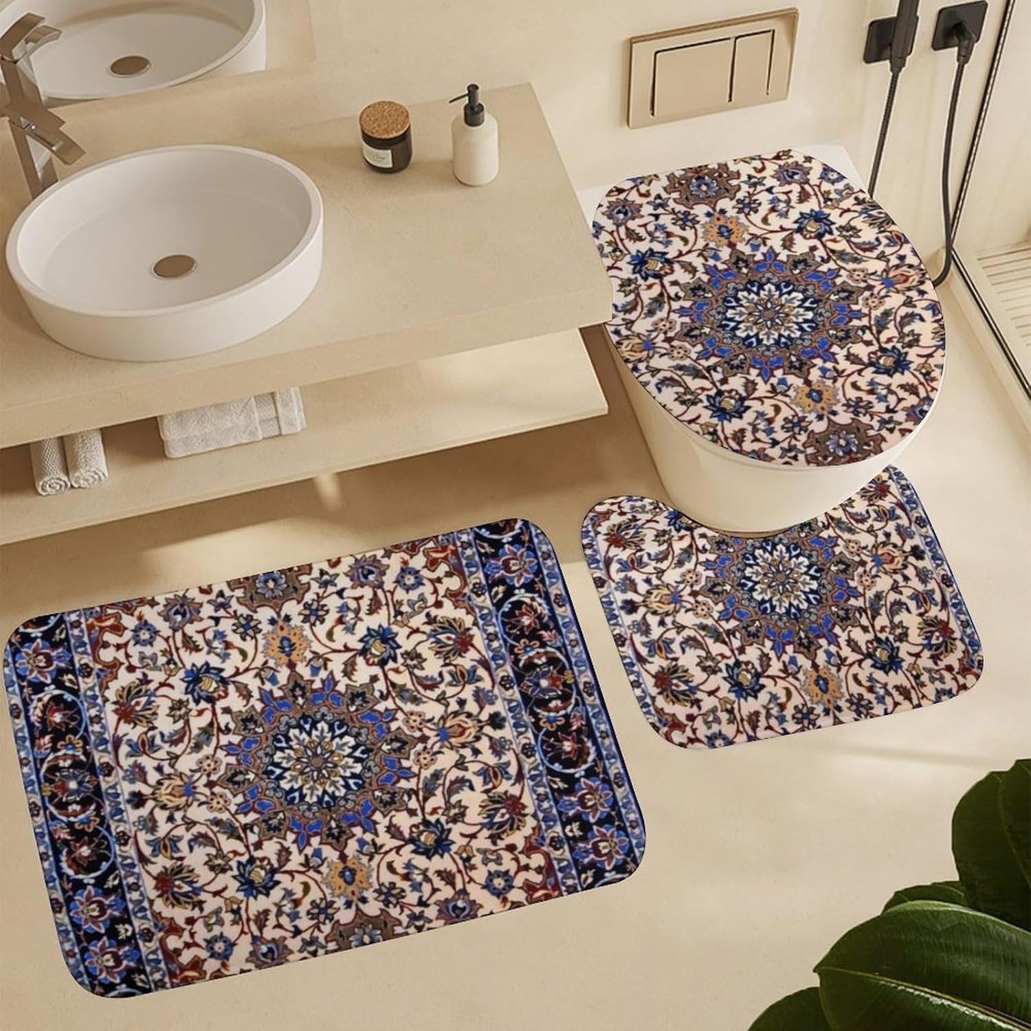 The bathroom floor mat set is very comfortable, the color is beautiful, it matches well with the shower curtain, the floor mat is thick, the padding is good, the water absorption is good, they can withstand washing and drying, and the anti slip backing works very well