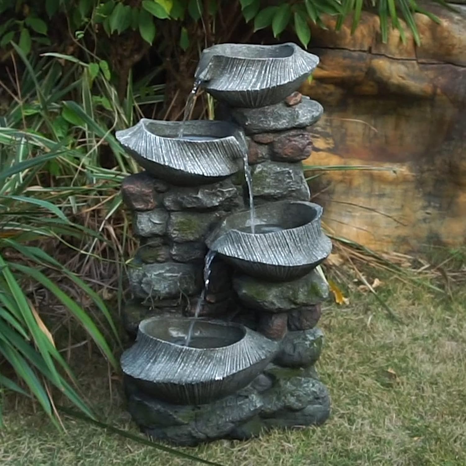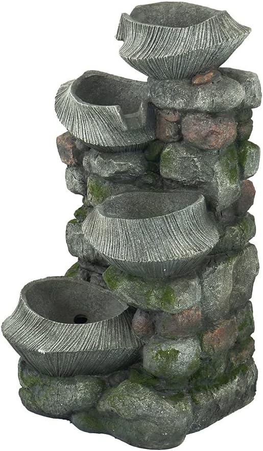 19x15x31.5" Indoor Outdoor Stone Water Fountain, 4-Tier Polyresin Cascading Rock Bowl Freestanding Fountain with LED Ligh