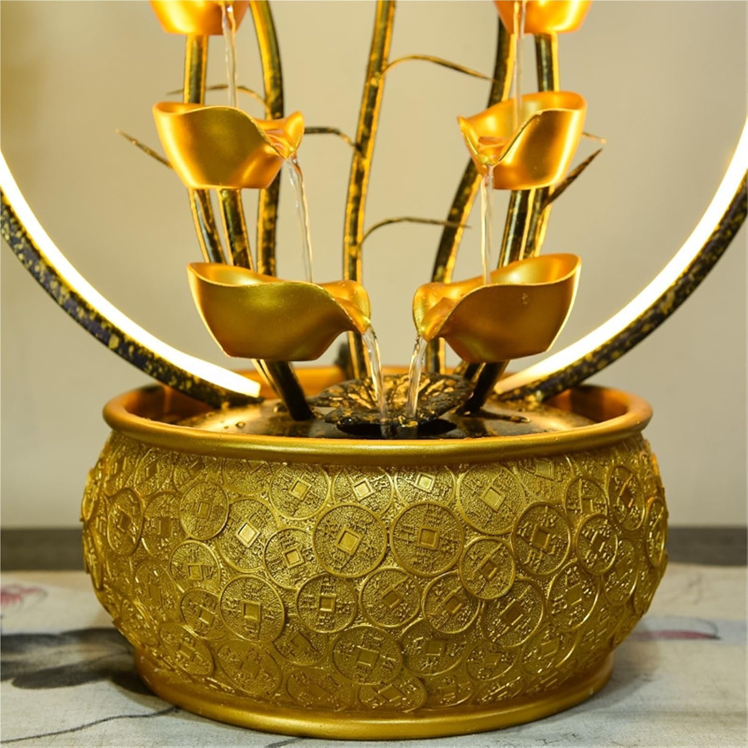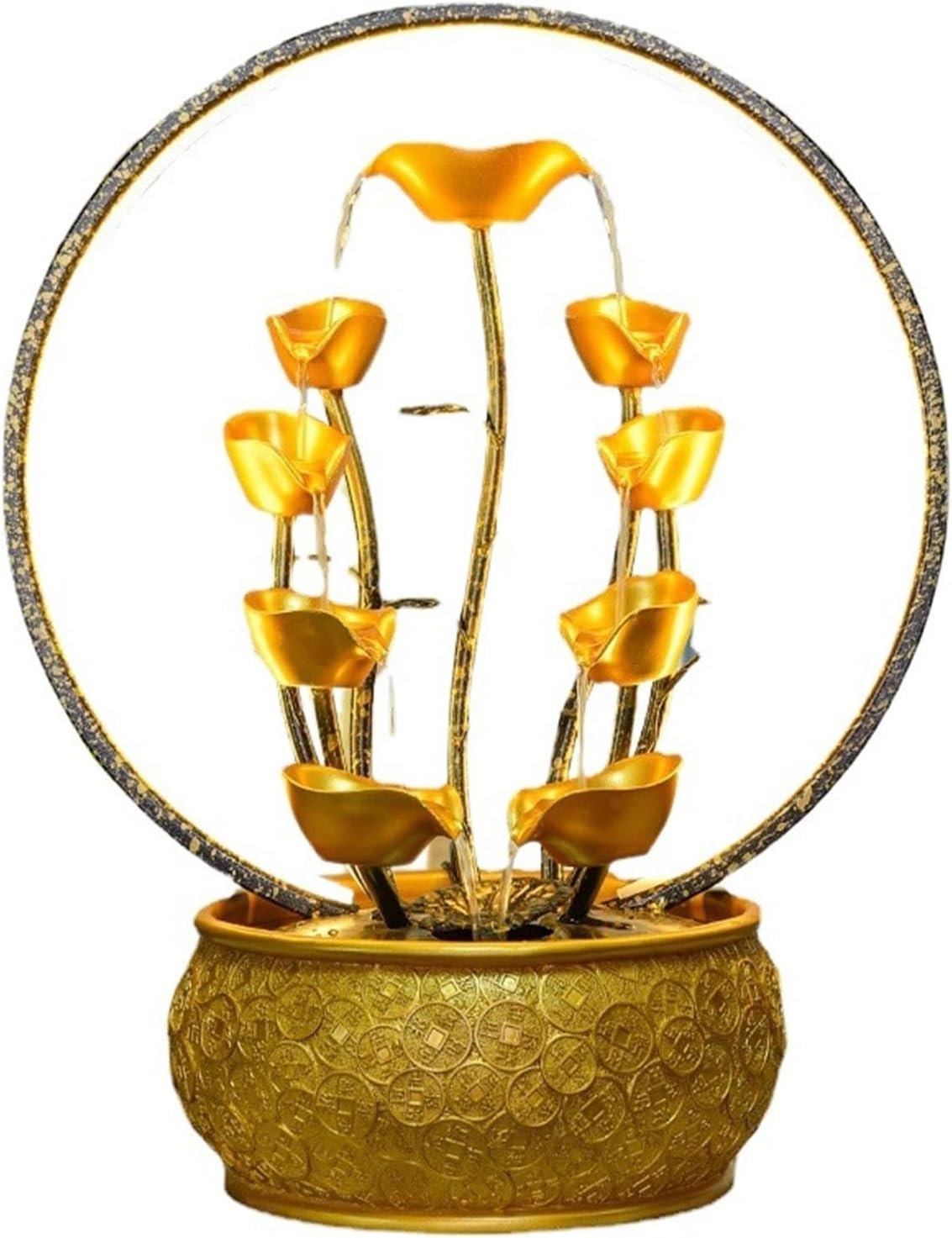 Elevate your indoor space with this Chinese Money Tree Tabletop Fountain, a stunning fusion of traditional symbolism and modern tranquility. Designed with a flowing LED-lit crystal ball, this piece draws on Feng Shui principles to enhance prosperity, harmony, and positive energy.The money tree is an age-old symbol of wealth and good luck, while the rotating crystal sphere represents the continuous motion of abundance. As the water flows gently, the ambient light from the LED illuminates the crystal, creating a captivating visual that's perfect for meditation rooms, desks, entryways, or sacred spaces.Crafted from durable, lightweight resin, the fountain is easy to maintain and fits beautifully into any interior decor—whether you’re seeking a gift, desk companion, or a peaceful home accent.
