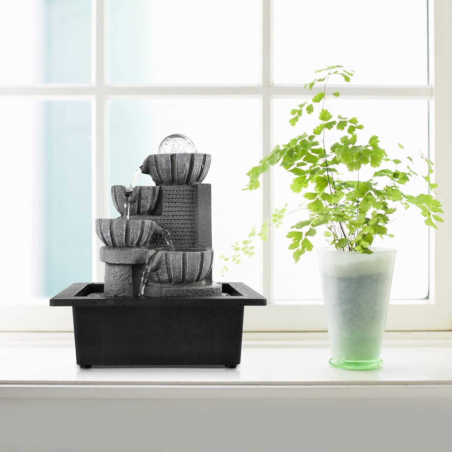 Bundle Included: 2pcs Tabletop Fountain Indoor Waterfall Fountain with LED Light Best Home Gifts for Friends or Family, Water Fountains for Home Office Decor (size: 9.0*5.5*11.0 inches &8.26*5.9*11.02 inches)