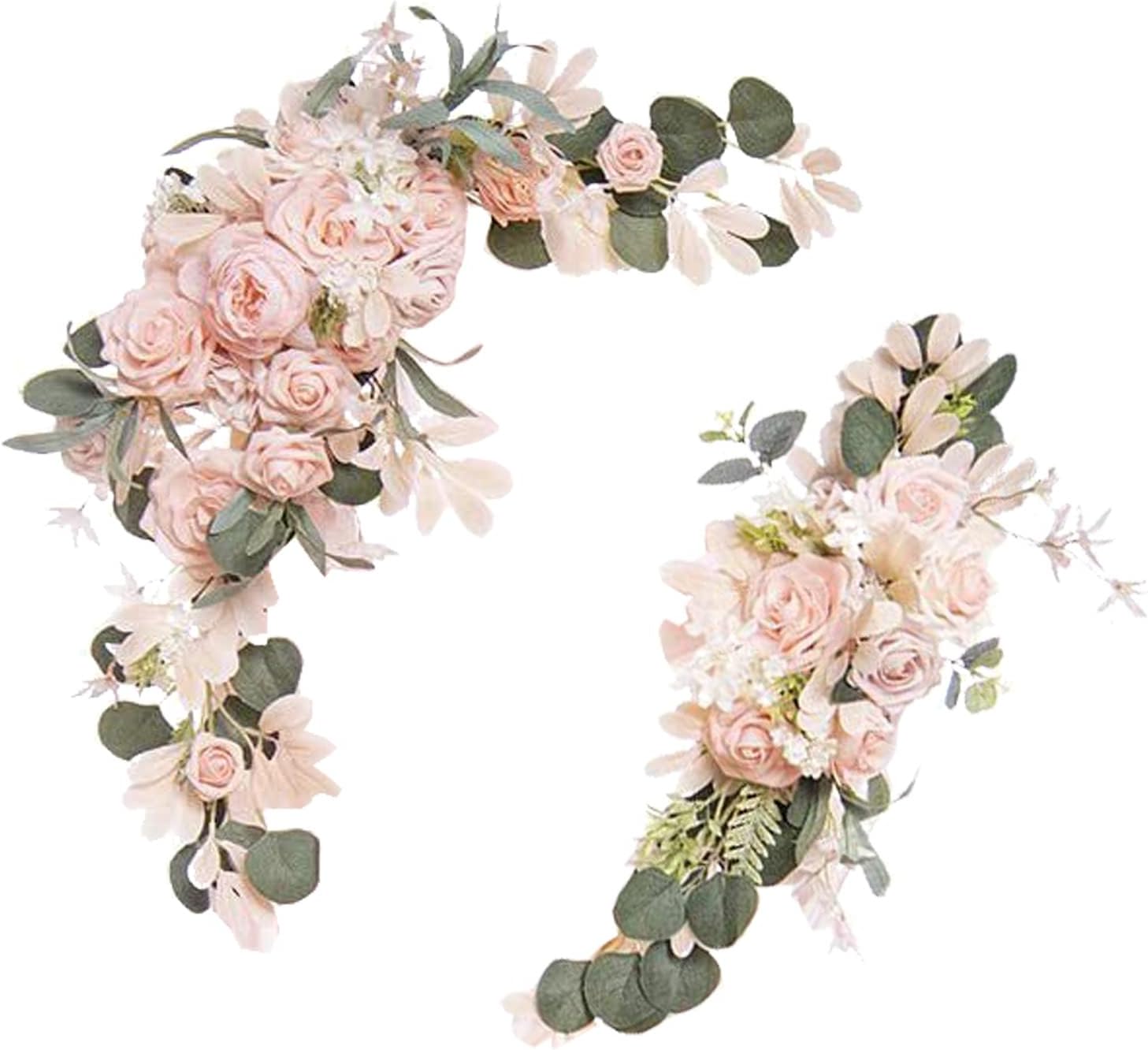 Features:1. Size: The large wreath measures 29.5x7.1 inches and the small wreath measures 27.6x6.3 inches. 2. Wonderful Gift: The artificial material makes sure it could be kept for a long time. The rose garland will also be a wonderful gift to express your bless to bride and bridesmaid in their wedding ceremony or reception. 3. No Maintenance Required: The artificial flower swag is made of silk, plastic materials, very vibrant in color, durable in feel, and just feels handcrafted overall. It requires no maintenance to keep its color and lifelike appearance. Specification:Material: Silk Cloth, Plastic Color: White, Pink Size: Large: 19.7x27.5 inches, Small: 9.8x19.7 inches. Package Include: 2× Artificial Flower Swags