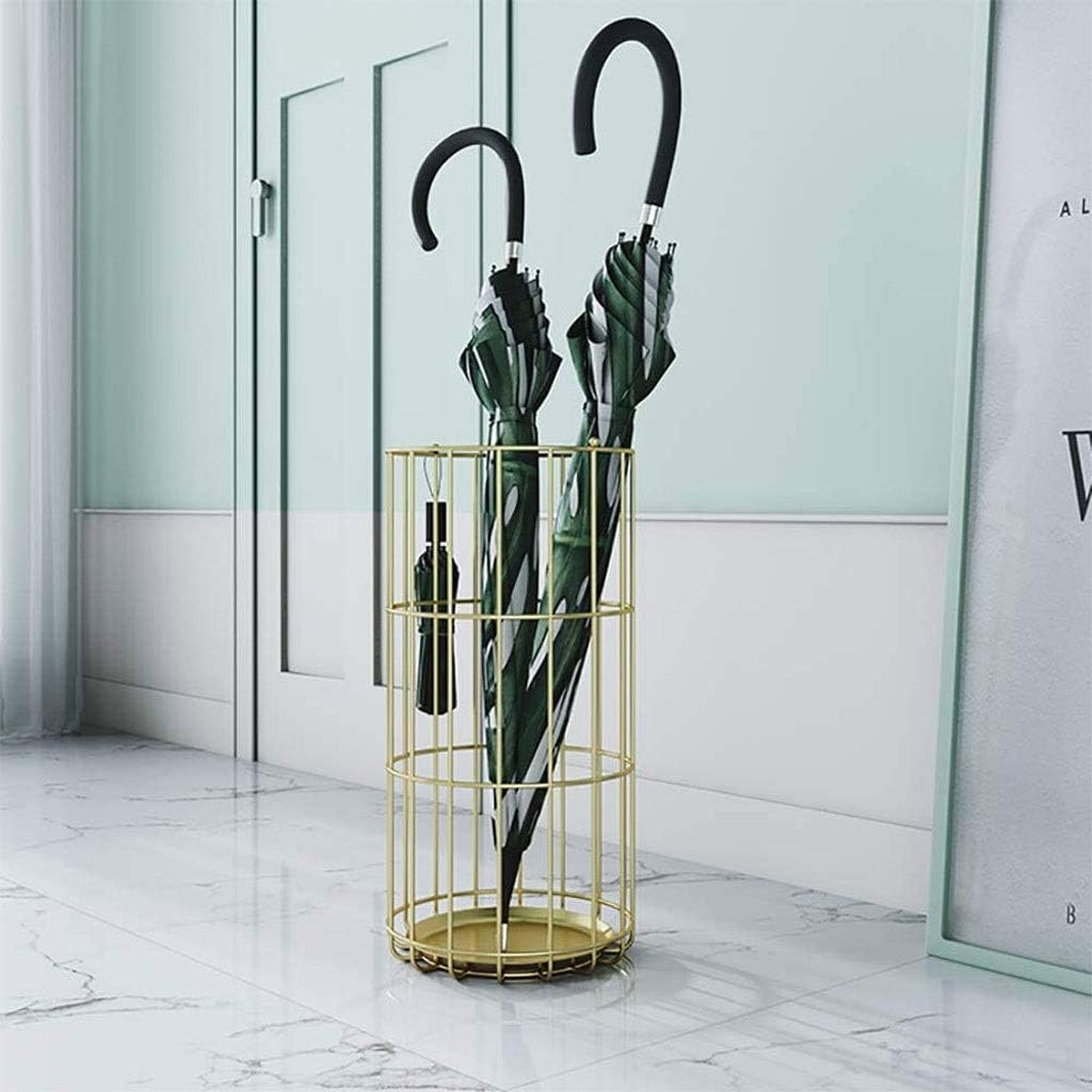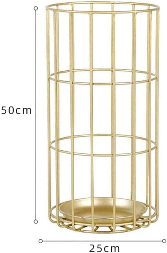 Description:You can put in corners or at entrances without adding clutter to your home or office. With this practical eye catching umbrella stand, there is no need anymore that you find anywhere for an umbrella when it rains, or your family throw the wet umbrellas everywhere when get home from outdoor. This is just the decor which can help you make an organized home and a comfortable life.Colour:GoldMaterial: wrought iron frameProcess: High-temperature baking paint, hand solderingSize: 25x 25x50 cm.Use scene: home, company, foyer, hotel, etc.Note: Each order includes only the umbrella stand and does not include other items .