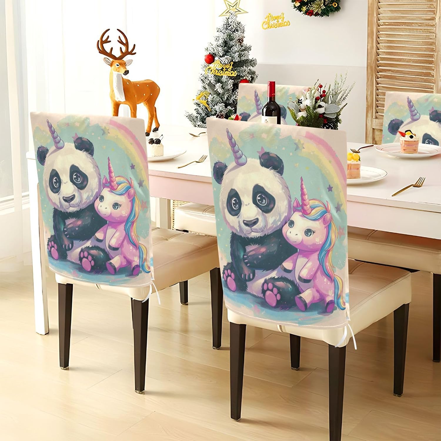 Chair Cover Material made of polyester,comfortable and soft to touch,reusable and suitable for long term use Features easy to install and remove, tie rope design at the bottom,machine washable Stylish Chair Decoration With beautiful pattern,it can be used for family party/ birthday party/wedding/ holiday party to add atmosphere, also can be used for chair decoration in living room, dorm, kitchen dining room,bedroom to bring protection to the chair while avoiding stains to dirty the chair back. Easy To Care Machine washable, Not washing with hot water, Not bleaching