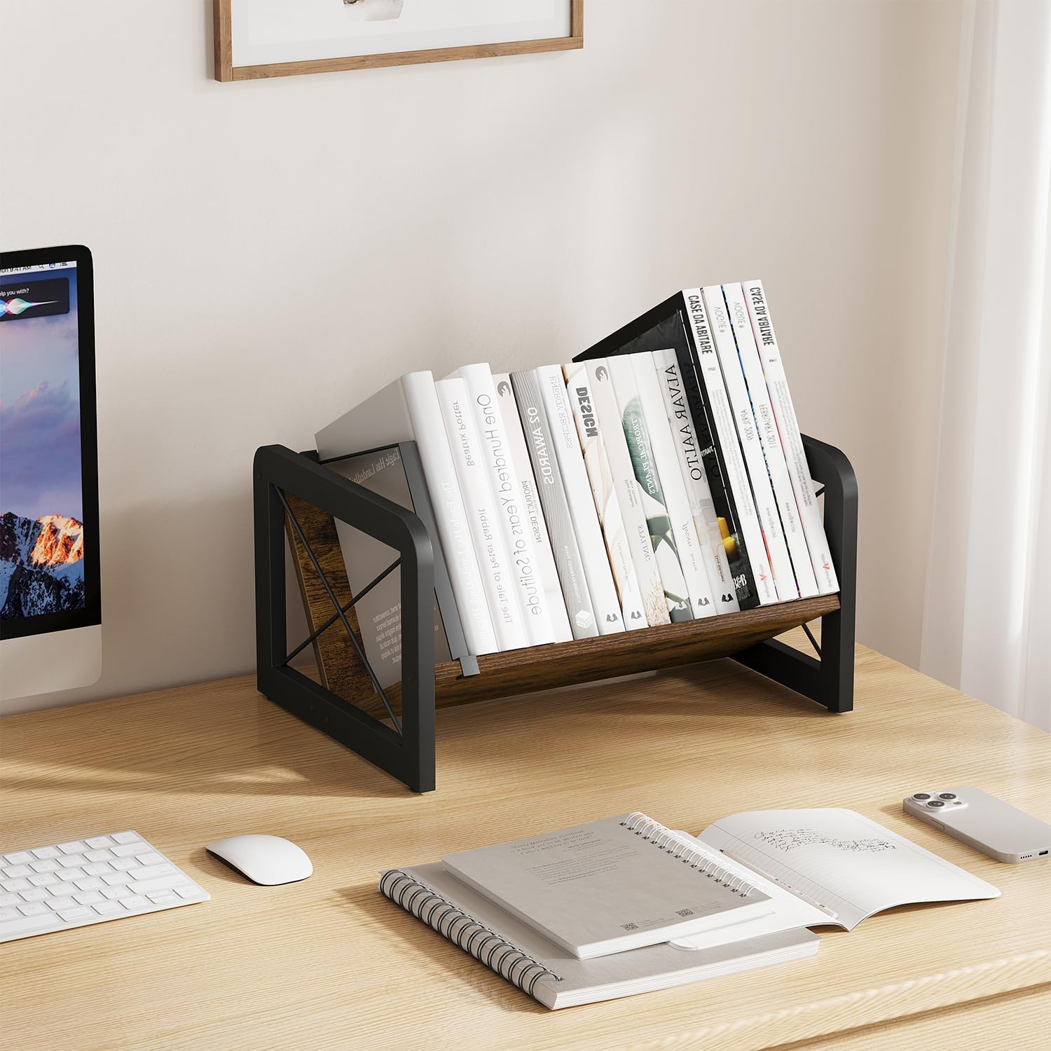YINMIT Vinyl Record Holder, 80-100 LP Vinyl Record Storage Rack, Quick Assembly Album Display Rack, Retro Style Organizer for Magazine, Book, Files, Albums