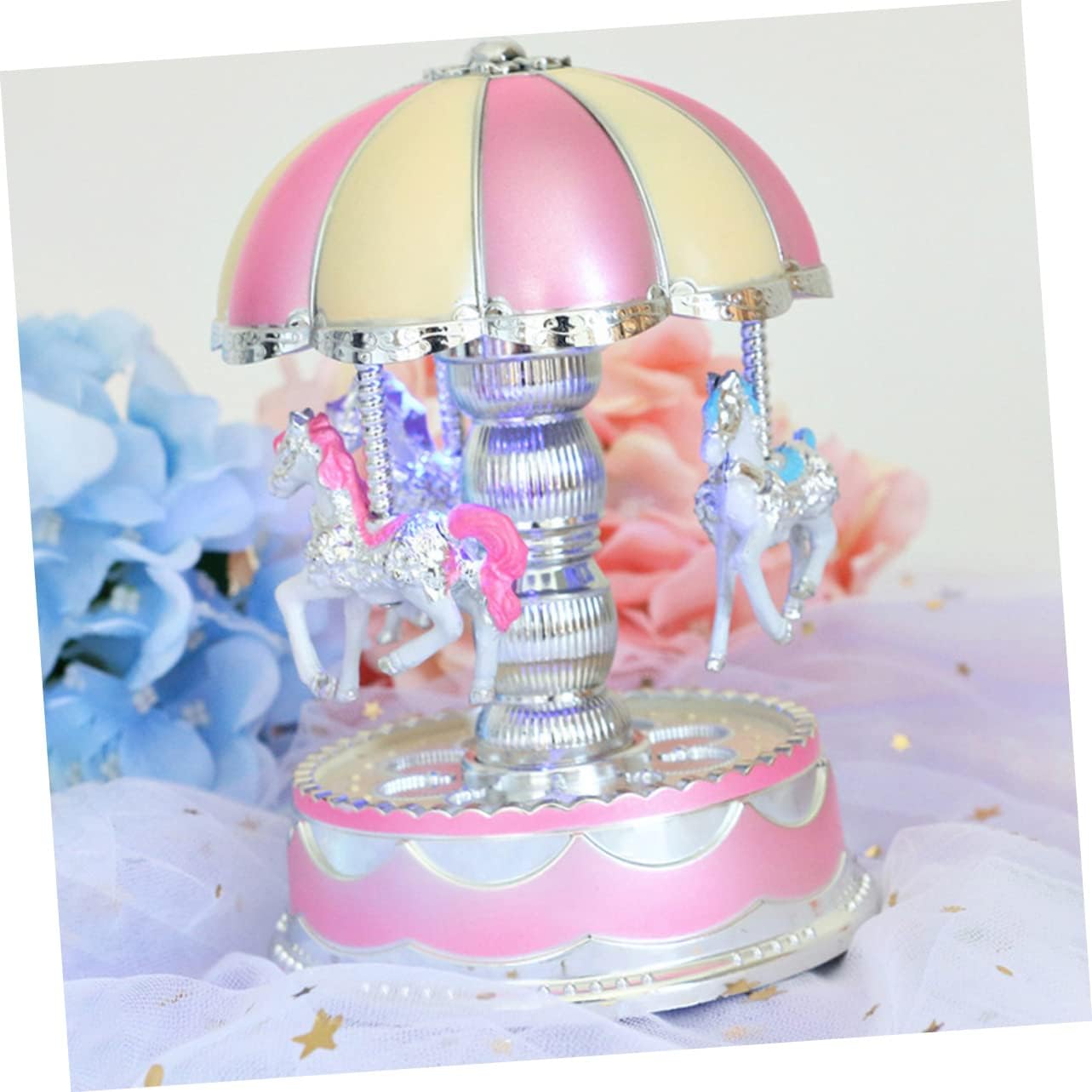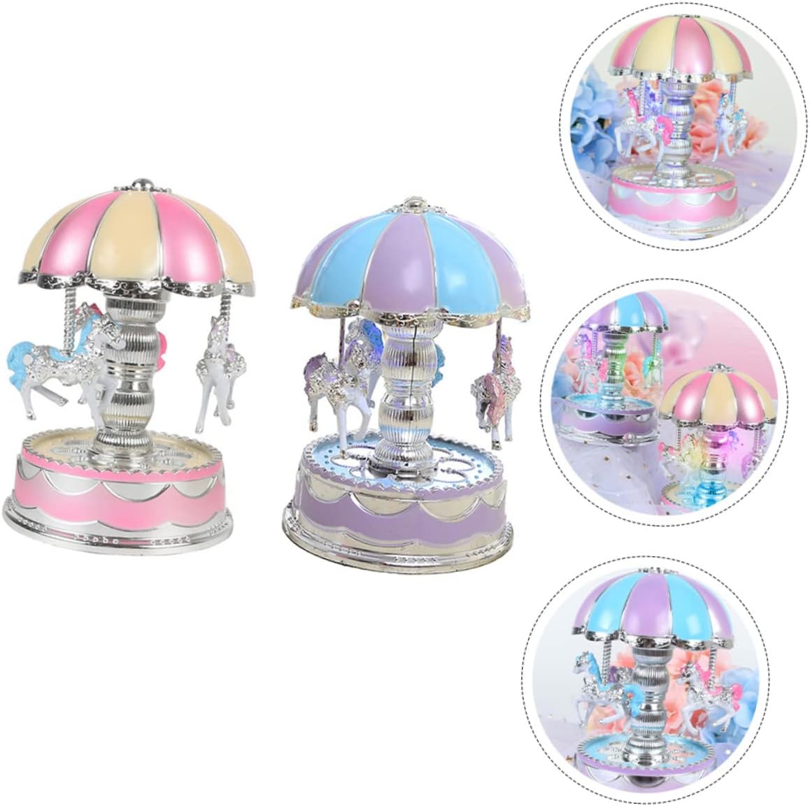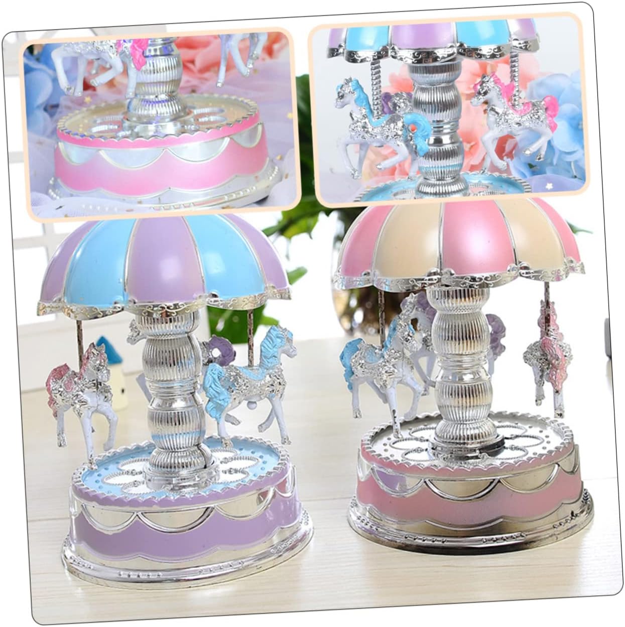 Package List 2 x Carousel Melody Boxes Characteristics -Color: Pink, Blue Rotating Horse present. -Material: Plastic Carousel Melody Box. -Size: About 15.00X11.00X11.00cm/5.89X4.32X4.32in Melody present . - Made of , our rotating horse themed musical box is and long-time use Rotating Horse Musical Box. - With flat bottom, it can stand steadily on smooth desktop, there is no need to worry it falling off Birthday present . - It is a girlfriend to give , a , a wedding present, a small present and so on Carousel Box. - It can be a room decoration and a lovable present for all special occasions, especially for Valentine Luminous Carousel Box. - for a birthday, holiday, anniversary, wedding, Mother's Day, Christmas, and Valentine's Day present Rotating Horse Craft.Goods DescriptionChristmas Birthday present a choice for you to decorate your home, also a nice present for your friends.Birthday present Are you looking for something to decorate your home? Look at this, it is a rotating horse melody box.Rotating Horse Craft With and fine workmanship, this musical box decoration is and highly creative
