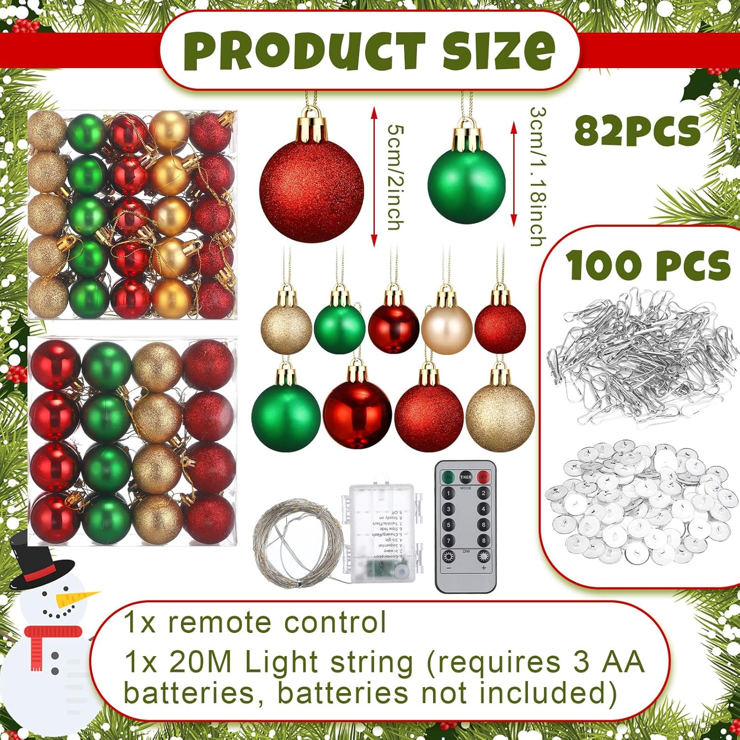 | Included Components | 1 x LED light strings, 100 x Ceiling hooks, 82 x Christmas ball |