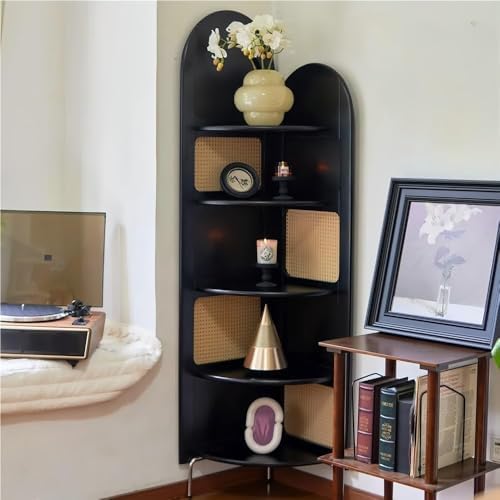 Transform your forgotten corners into elegant storage solutions with our Vintage Corner Bookshelf featuring Rattan accents. This stylish bookshelf is ideal for anyone looking to organize books, display decorative items, or infuse their space with a touch of vintage charm without sacrificing valuable floor space. Designed with a 90° fan shape and five staggered shelves, this corner bookshelf enhances both functionality and aesthetics, making it a perfect addition to bedrooms, living rooms, or home offices. Its unique combination of rattan and solid wood not only provides durability but also complements a range of interior styles from modern to minimalist. This versatile piece of furniture is not just about storage; it's about creating a warm and inviting atmosphere in your home. Whether you're an avid reader wanting to display your favorite titles or someone who loves to showcase personal treasures, this bookshelf serves as the perfect backdrop. Product Name: Vintage Corner Bookshelf Style: Modern and Minimalist Materials: Wood and Rattan Package List: 1 x Corner Bookshelf Please note: 1. Product dimensions are manually measured and may have a 1-3CM error. 2. Slight color variations may occur due to different display settings; please refer to the actual product for accuracy. 3. Should you have any questions or need assistance, feel free to reach out, and we will be happy to help you promptly. Elevate your space and embrace the charm of organized living with our Vintage Corner Bookshelf.