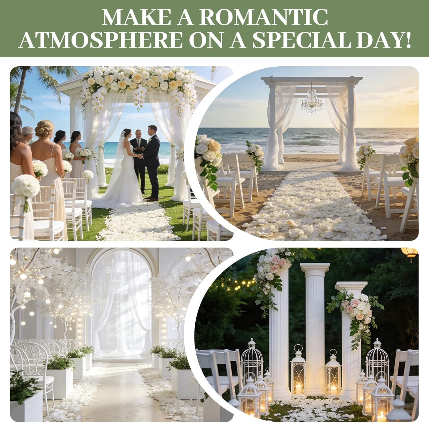 Features: A well-planned wedding can not be without rose petal decoration, pure white rose petals accompanied by guests throwing, with blessings to frame the happy moments In addition to being used as biodegradable confetti, you can also use these petals to unleash endless creative possibilities, such as making handmade cards, resin art, candle art, etc. Specifications: Material: rose Color: white Size: Diameter about 0.8-1.5 inches Weight: 150g / 5.3oz Package includes: 150G rose petal Notes: Manual measurement, please allow slight errors on size. The color may exist a slight difference due to different screen displays