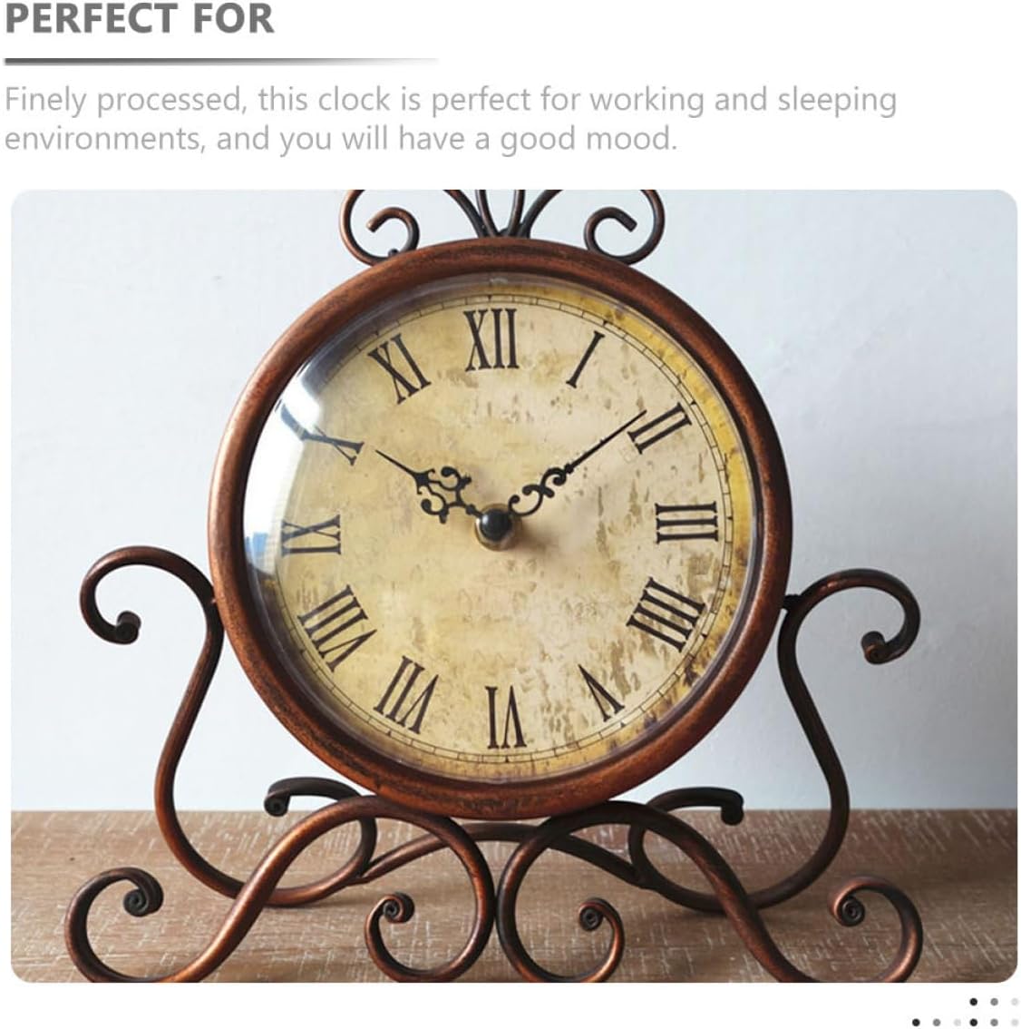 Package List 1 x Desk Clock Features -Product Info:Retro clock - Material: Iron, glass - Size: About 28.00X24.00X5.00cm/11.00X9.43X1.97in - - Features vintage and delicate look design, great choice for home furnishing, decorative and practical alarm clock ornament. - Classical and retro appearance designed desktop clock decor, excellent decorative and using experience decorative clocks for table. - Characteristic and with vintage design. Simple and generous , smooth in lines retro table clock. - This delicate desk clock makes it easy for you to see the time no matter where it placed rustic mantel clock. - Also, it perfect for restaurant, coffee shop, KTV, office, bar and so on, multiple occasions suitable clocks for living room decor tabletop.Goods Descriptionretro mantel clock This artistic silent tabletop clock ornament adopts elaborate and creative shape design, made of wood, glass and electronic components material, and practical.vintage clocks Retro and , a good gift for friends and family members