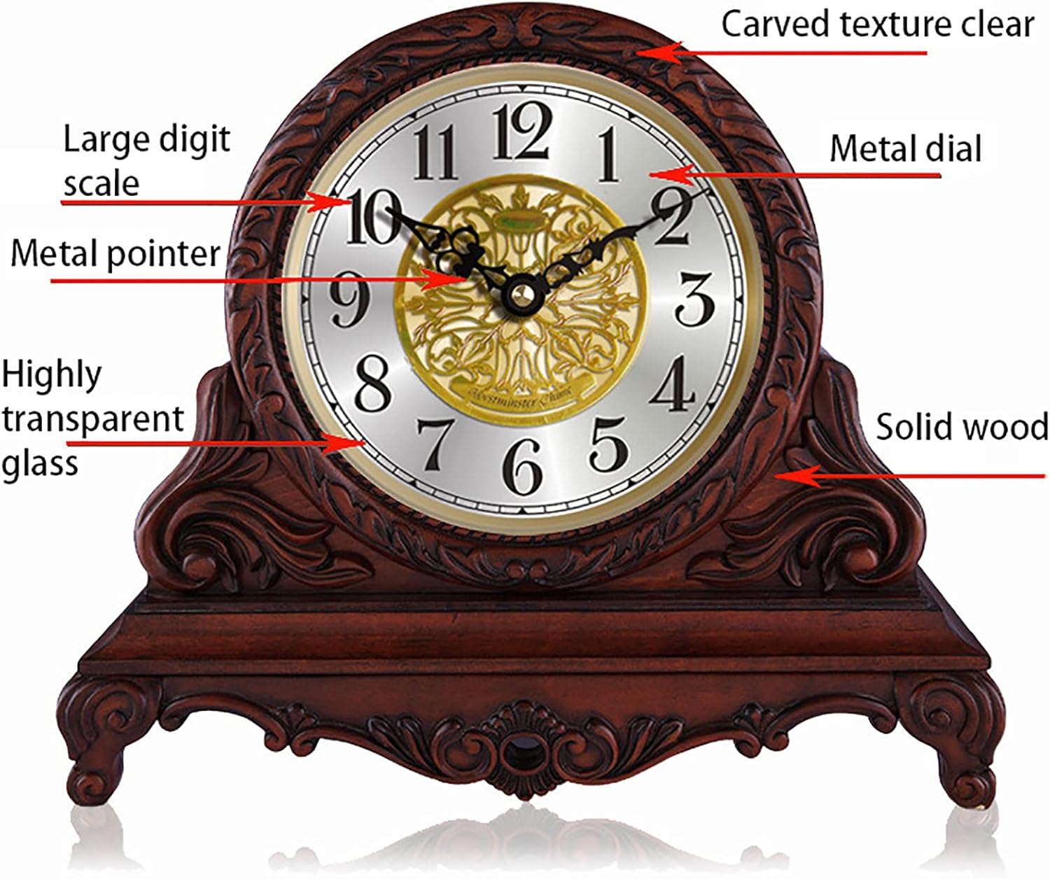 Mantel Clock Silent Wood Shelf Clock Mantle Clocks Battery Operated, Wooden Desk Clocks Mantel Clocks with Chimes for Bedroom, Living Room, Fireplace, Office, Kitchen, Desk, Home Essentials Decor Product Type: Fireplace Clocks material: Solid wood Size: 342*292mm Thickness: 122mm Packing specification: 420*347*183MM Weight: 4 kg Movement type: Sweep movement Power type: battery Whether double-sided: single-sided Tip: Do not use alkaline batteries because they have a higher current output, which will affect the service life of the phone, and sometimes even affect the accuracy of the travel time. Please use cheap carbon batteries for wall clocks whenever possible.