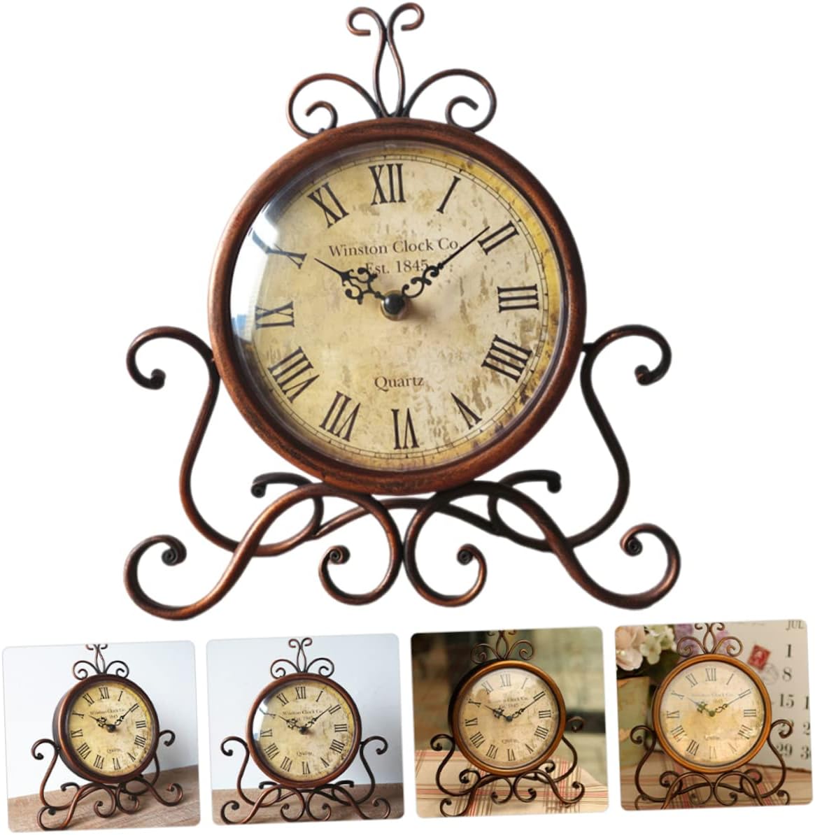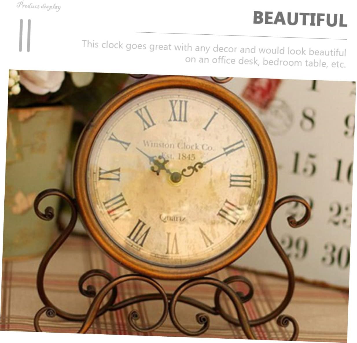 Package List 1 x Desk Clock Features - Material: Iron, glass clock for working desk - Size: About 28.00X24.00X5.00cm/11.00X9.43X1.97in mantelpiece clock -Product Info:Retro clock - retro mantel clock - Vintage and chic appearance design, proper size, it won't take up too much space at your home clock for desk. - Break the dull feeling of space, full of style, suitable for a style of scenes of space matching table clocks for living room decor. - Use it to change the old style of your home. It the interior space more refreshing and comfortable decor for table top. - Well-made of premium and sturdy materials, and practical for using time vintage table clock. - This retro desktop classical mute clock with clear and large scale, easy and convenient to read clock decorations.Goods Descriptionmantel clocks Features the iron and glass material, which has high durability, not easy to deform.decorative mantel clocks This desktop clock is made of , which can withstand the use.decoative mantel clock Fine workmanship, it ensures the practicality