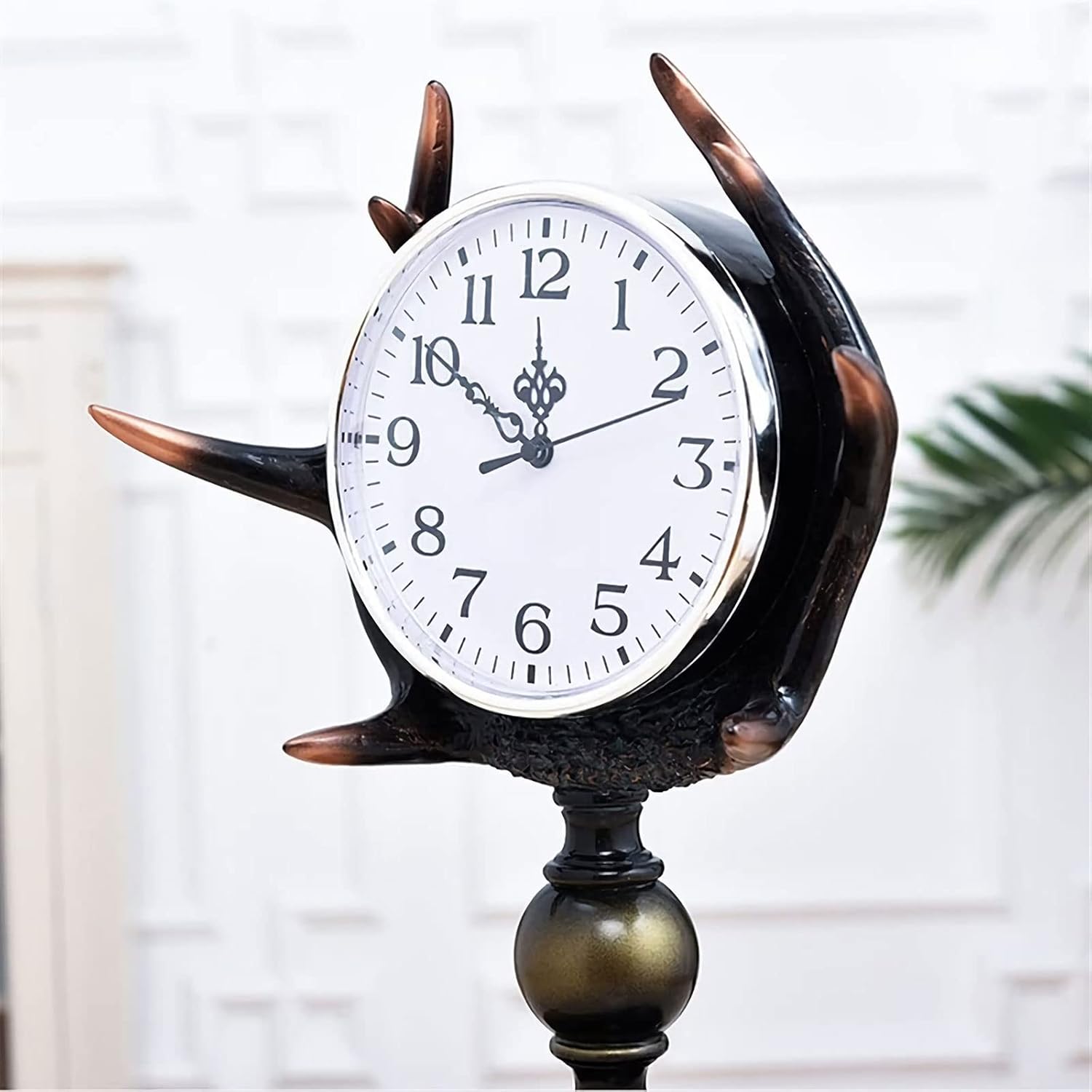 Our clock for living room decor is a perfect choice for your family and friends as Mother's day, Christmas , birthday , housewarming's and wedding gift for your family or friends. Mantel Clock, Desk clock living room desktop retro table clock clock American crafts ornaments desk clock antlers clock ornaments Specifications: Material: Resin Craft: handpainted Category: Gift Hanging form: ornaments Modeling: Geometry Size: Length 28*Width 18*Height 44CM Package Includes: 1 * table Clock