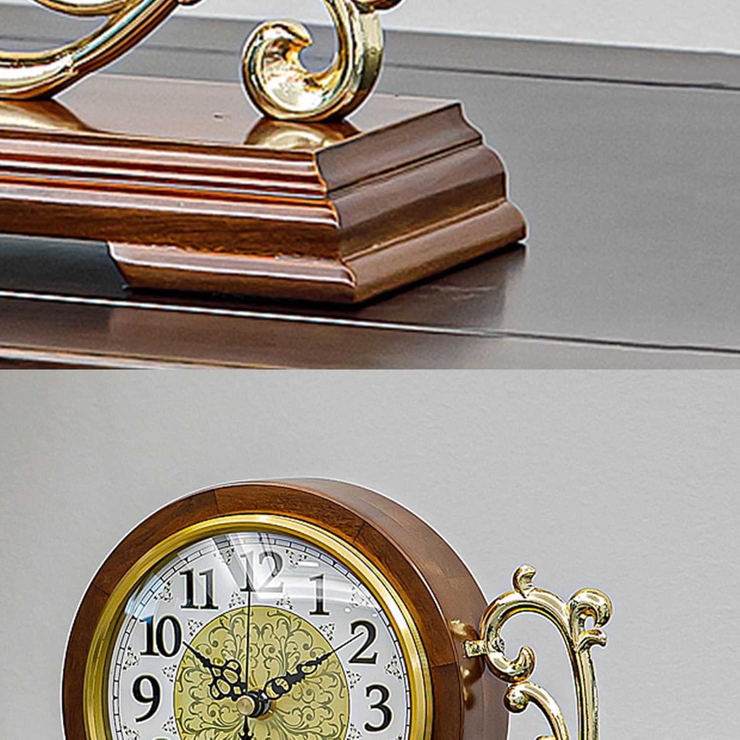 The clock uses environmentally friendly paint, with smooth lines and will not fade. The mirror surface of the clock is made of durable high glass, which is not easy to scratch. If you are looking for a gift for this elegant friend or family member, or you just want to replace the old clock at home, our clock will provide you with the perfect style. Product Category: Fireplace Clock Material: wood + metal + glass movement: Silent quartz movement Power: 1 x AA battery(AA batteries not included). Size: 23 x 26 cm/9.06 x 10.24 inches Color: Brown Font: Arabic numerals Package Contents:Table clock*1 Applicable location: Living room, Bedroom, Study, Office, Kitchen, Toilet, Public Places remind: 1. Please use AA (1.5V) carbon batteries (not included), do not use high-energy batteries, which may damage the movement. 2. We only sell clocks, not other products. 3. Due to manual measurement, please allow an error of 1-3cm, and make sure you do not sort before you mind. Please understand that these photos may have a certain reflective effect, please refer to the actual product.