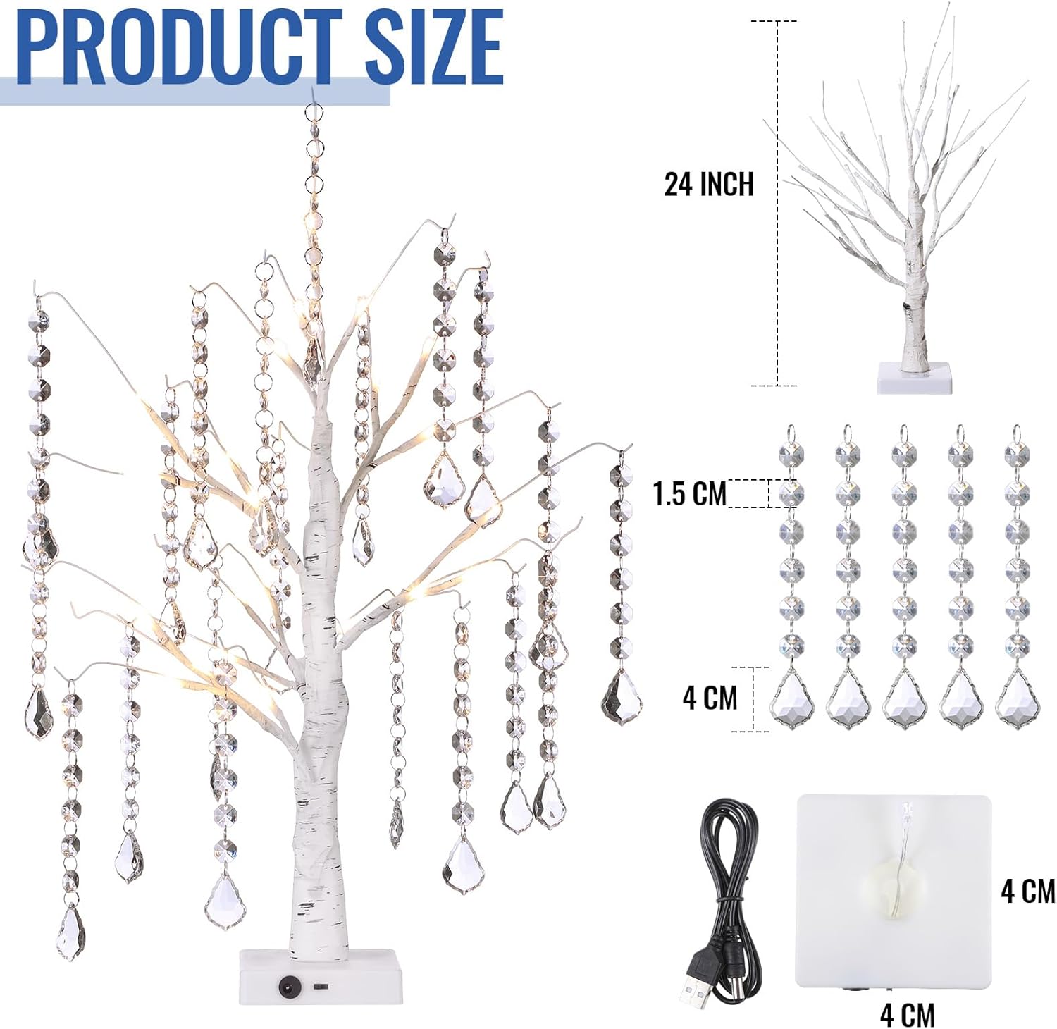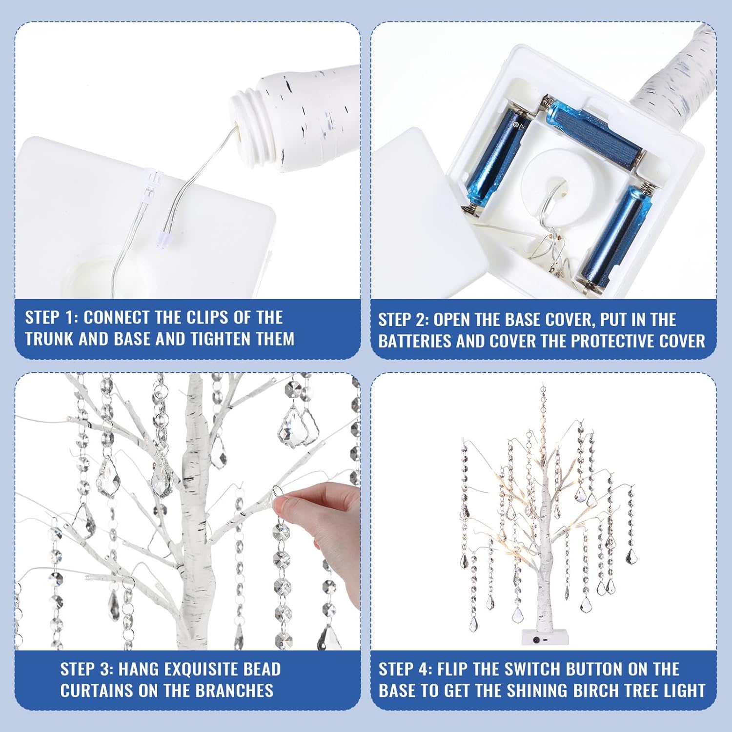 Features: The white birch nature combined with lights radiates a romantic and festive atmosphere, matching well with any decoration theme your event may have. Specialize your own artificial tree centerpiece and create a warm and glowing space that is unique to your style and purpose. Unleash your creativity and make every moment stand out with this highly versatile decor piece. Specifications: Material: acrylic Color: white, clear Size: Artificial trees: about 2 ft/ 60 cm tall Package includes: 6 x Artificial trees, 72 x garland strands Notes: Manual measurement, please allow slight errors on size. The color may exist a slight difference due to different screen displays. The battery life is related to the frequency and length of use of the product. If the frequency of use is high, and one-time use long, the battery life will be relatively short.