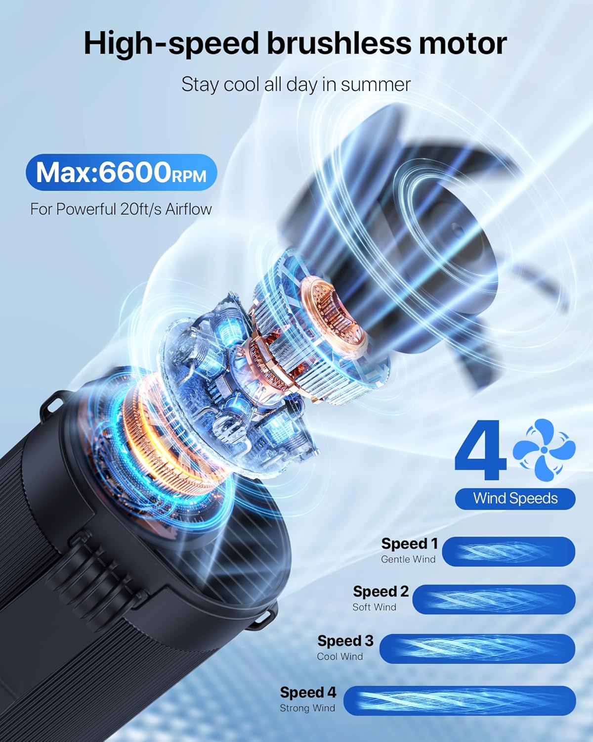 | Included Components | Neck Lanyard, USB-C Charging Cable, User Manual, Waist Clip Fan |