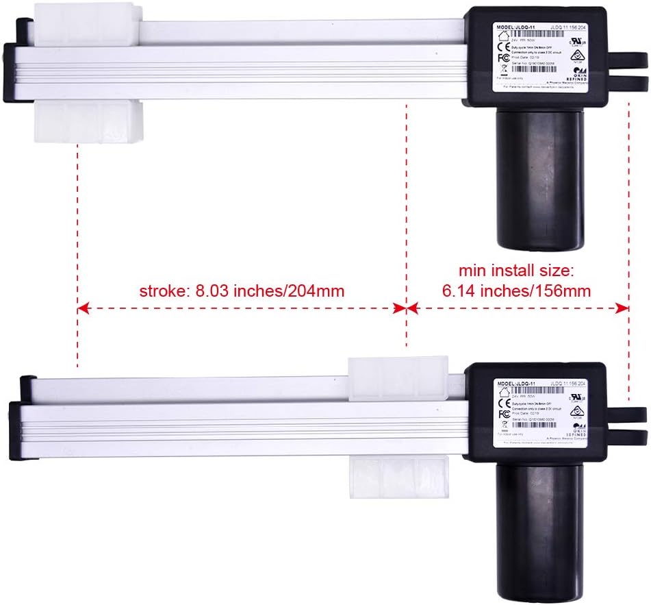 It is important to make sure our motor SKU " JLDQ.11.156.204M " on label and the cable connectors/motor end shapes are same to yours. Refined-R Recliner Motor Part JLDQ.11.156.204M offered , Refined-R JLDQ-11 Part # JLDQ.11.156.204M can replace JLDQ-11 Part JLDQ.11.156.204.Appearance: Black(PA),silver white(aluminum)Motor: Low-voltage DC motor(24V)Operation frequency: On 1 min/Off 8minStroke: 204mmMinimum dimensions: 156mmMax install dimension: 360mmPush force: 1000N, Pull force: 1000NMax Load: 1000N
