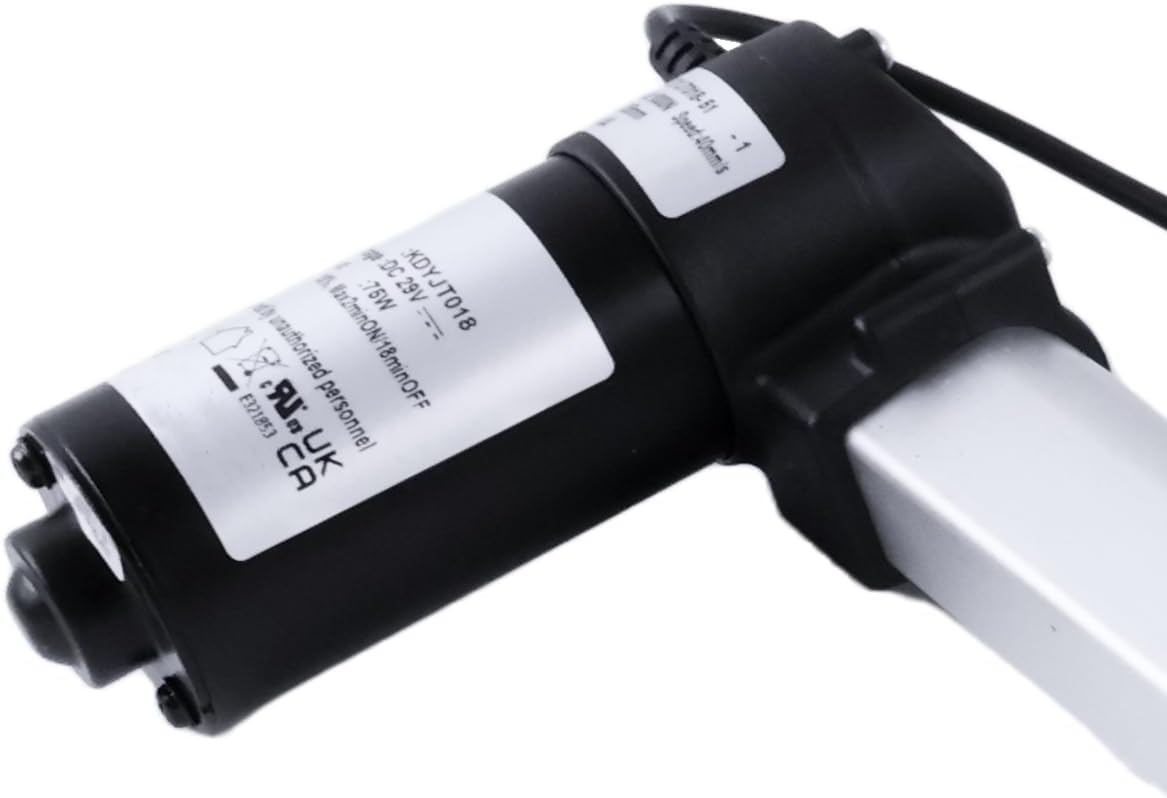 【Spc】 Stroke: 335 mm/13.19 inches Minimum install dimension: 495 mm/19.49 inches Speed: 40mm/s Raled Voltage:DC 29V Rated Input:75WMax.load:1000N Max.Duty Cycle:2min ON and 18 min OFF(10%)
