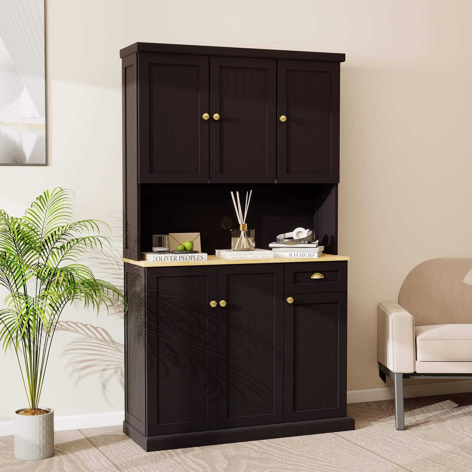 This pair of cabinets with wood grain veneer and metal handles creates a unique modern freestanding sideboard that can be easily integrated into the kitchen. The surface of the storage cabinet is smooth and easy to clean, which helps to maintain the safety and hygiene of the kitchen self-service cabinet.