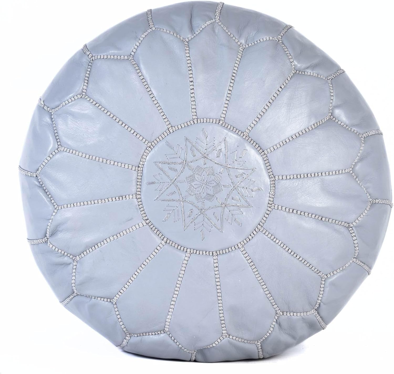 Transform your space with the timeless charm of a handmade Moroccan leather pouf ottoman. Soft yet sturdy, it brings a touch of Arabic artistry and effortless bohemian warmth to any room. Perfect by the sofa as a footrest, styled as a floor cushion around the coffee table, or even as casual seating on the patio, this pouf blends comfort with authentic design. Every piece is individually hand-embroidered by hand in Marrakech, making each pouf unique. The natural leather, carefully tanned and stitched, carries subtle variations in tone and texture that add depth, personality, and cultural richness to your décor. Crafted from eco-friendly, sustainably sourced leather, this pouf is not just décor but a lasting heirloom. Strong stitching ensures durability, while proper care allows it to age gracefully, developing a rich patina over time. Product Highlights: Handcrafted from 100% genuine Moroccan leather Embroidered and stitched entirely by hand in Marrakech Measures approximately 22″ in diameter Offered in a curated range of timeless colors Sustainable, eco-conscious, and built to last