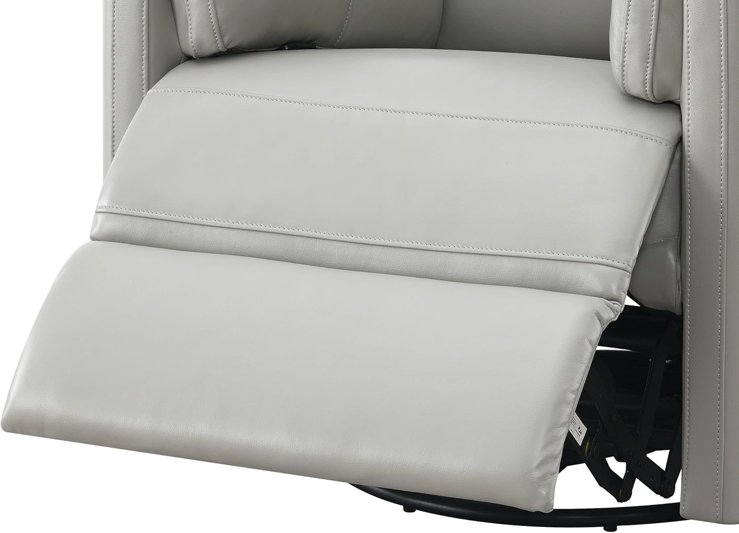 Bring the best in seating comfort to a modern space created as a haven for relaxation as this glider recliner chair checks all the boxes of a supreme choice with versatility. Begin with construction of plywood, adding stability with a lightweight feel. Updated silhouetting features squared track arms with a rounded base, and channel-tufting on its back and footrest. This stylish glider is covered in gray faux leather, adding a soft feel. Two accent pillows and pocket coil tight seating extend the superior comfort of a manual recliner that glides in movement.