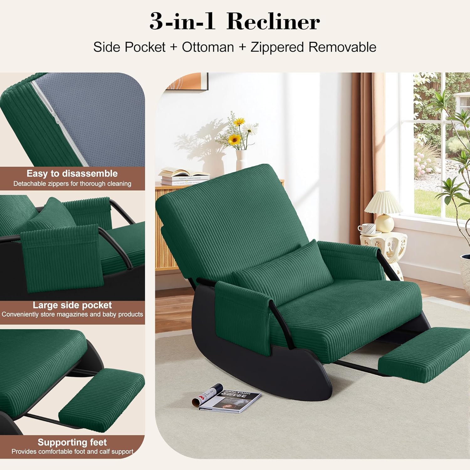 | Included Components | Ottoman, Plush Throw Pillow, Retractable Footrest, Side Pockets |