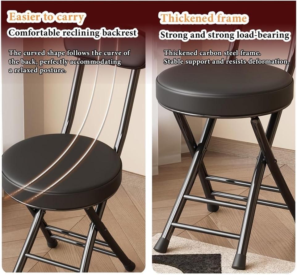 The Folding Stool is the perfect solution for those seeking versatile seating options in compact living spaces. Designed with practicality in mind, this portable stool folds easily for convenient storage in dorm rooms, apartments, or any area with limited space. Crafted with a sturdy steel frame and a comfortable PU padded seat, this folding stool provides both durability and comfort. Whether you are studying, working from home, or entertaining guests, the ergonomic design, complete with a footrest, ensures a relaxed experience. Its round seat, measuring 12 inches in diameter, accommodates various body types, making it an ideal choice for shared spaces. Each set includes two folding stools, allowing you to easily host friends or family gatherings without compromising on space. With a height of 45 cm from the floor to the seat, this stool is suitable for both casual and bar-height tables. When not in use, simply fold the stools down to a compact size of 13 x 9.5 x 30 inches, making them easy to tuck away in closets or under furniture. This functionality makes it a great addition to outdoor events, picnics, or camping trips as well. Please note that the folding stool is designed for adult use only and is not suitable for children. For optimal safety, always follow the assembly instructions carefully. Enhance your living space with the convenience and comfort of our Folding Stool—your go-to seating solution for any occasion.