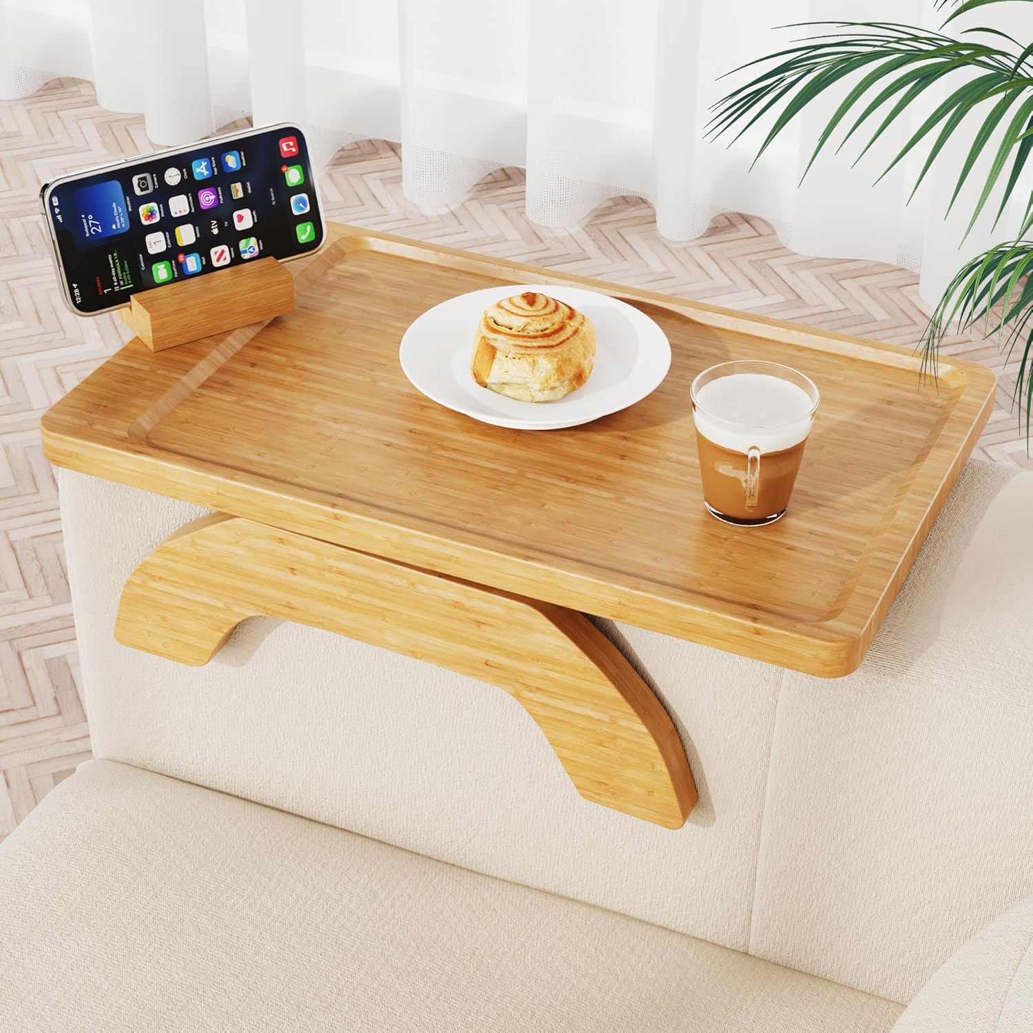 | Recommended Uses For Product | Coffee Table, Couchside snack table, Hands-free video viewing, Living room accessory, Phone or tablet stand, Reading or work surface, Small space furniture solution, Sofa armrest organizer, TV Dinner Table, TV tray table |