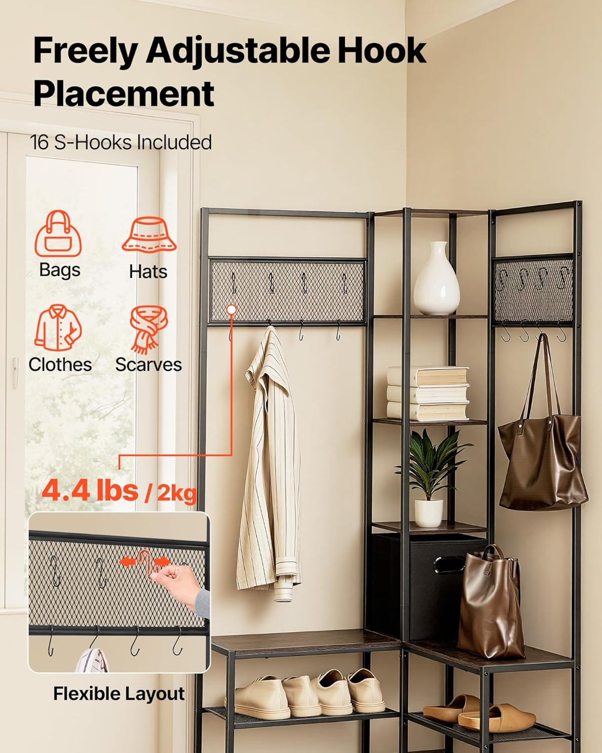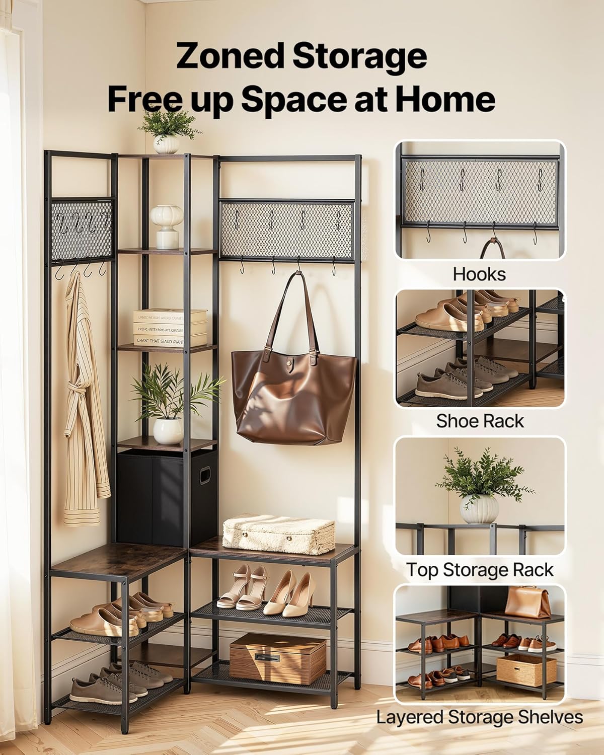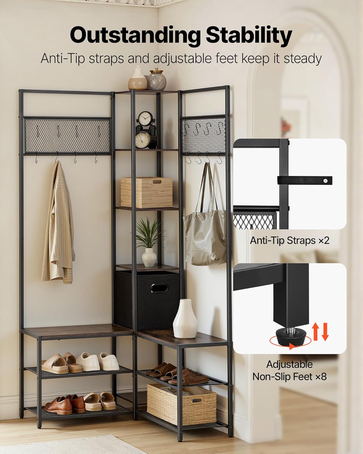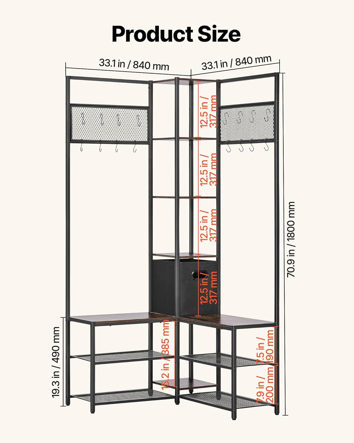 | Item Type Name | 70.9 in Coat Rack with Hooks and Steel Frame, Freestanding Clothes Shoes Rack Storage Organizer with Anti-Tip Set, for Entrance, Closet, Office, Rustic Brown |