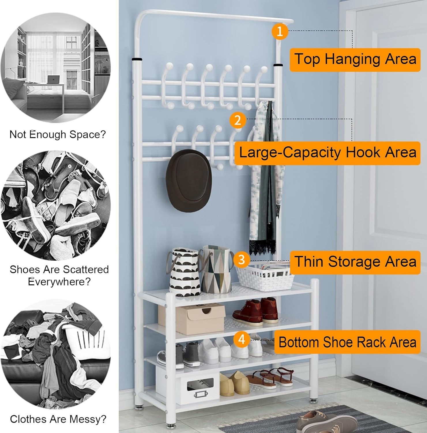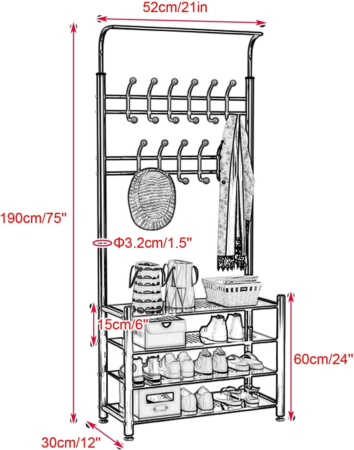 Revamp your entryway with the Coat Rack Shoe Bench, designed to bring order and elegance to your home. This versatile piece combines a stylish coat rack with a functional shoe bench, making
