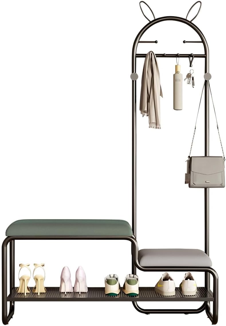 Introducing our versatile 4-in-1 Coat Rack and Shoe Bench Set, designed to enhance your entryway experience. This stylish set features 5 sturdy coat hooks, a spacious storage rack, and a sle