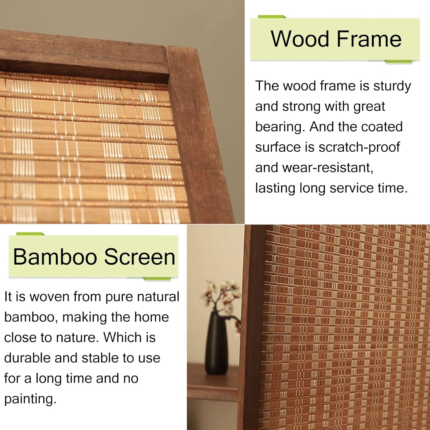When we need to focus on ourselves, free from public distractions, have a private discussion, add privacy to your solitude, block out the light from the sun or the laptop, or just cover the mess temporarily, partition room divider just work perfect for you.●SpecificationsMaterial: Bamboo Screen and Wood FrameSingle Panel Width: 40cm(15.7 in)Leg Height: 6cm(2.3 in)●FeaturesEasy to set up, move & store.Foldable room screen that allows you to adjust to the actual construction of the room.Wheels foot mat support provides more stability to the screen divider than others.It's lightweight for easy relocation and folds close for storage when not in use. ●Our ServicesAll enquiries will be valued and replied within 24 hours.Our Inspection Department will test each batch of product to ensure the quality, including material test and performance test.Your any feedback will be highly appreciate to make sure we can do better and better.●TipsManual measurement,there will be 1-3cm error,please understand.If a slight odor is normal,it will disappear within two to three days.Due to light and personal differences in color understanding, there will be small color difference,in kind prevail.