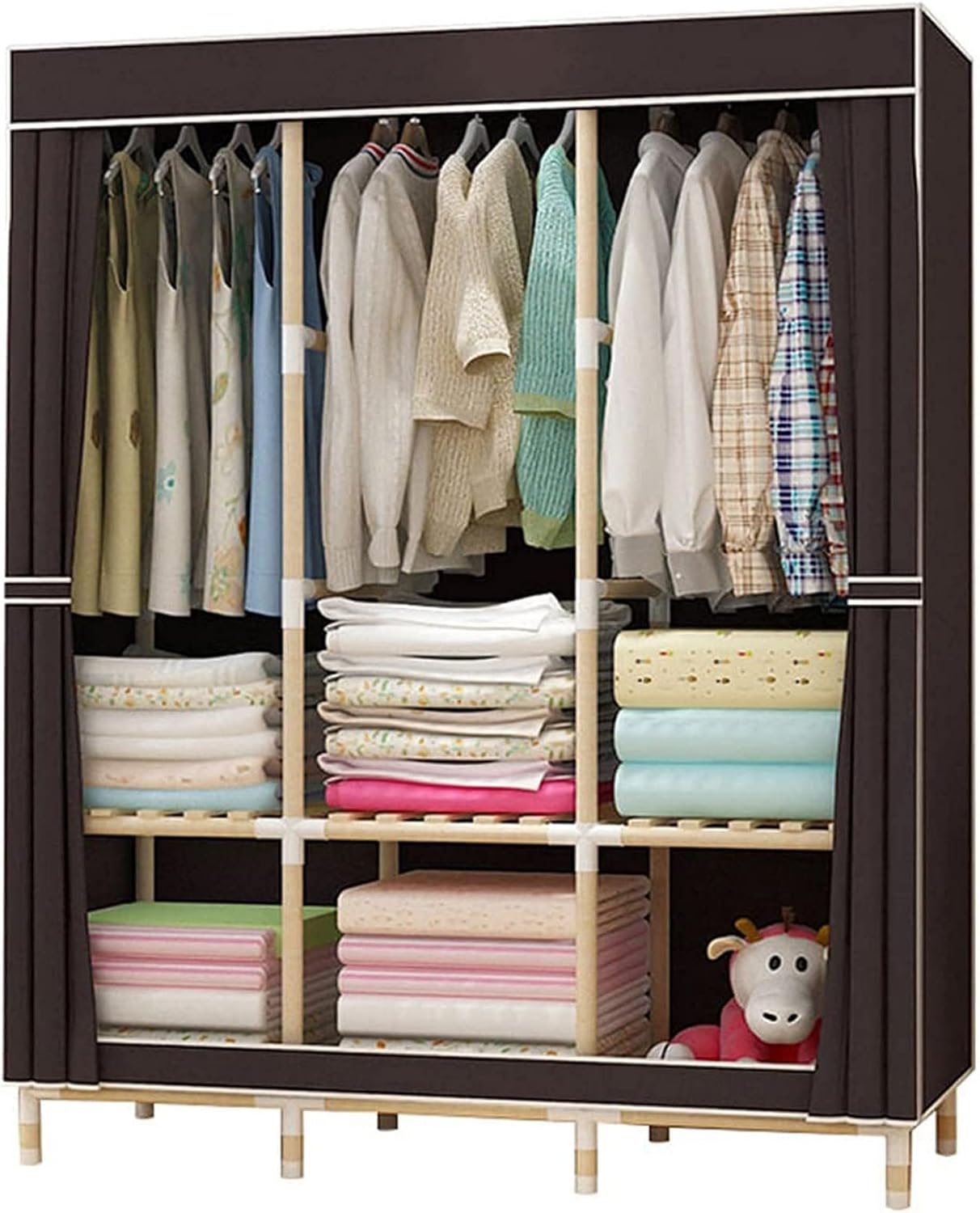 Freestanding Clothing Coat Storage Rack:Welcome to my store! The portable wardrobe has a lot of space for you to store a lot of things, and the portable wardrobe is easy to assemble, disassemble and reassemble. You can store a lot of folded clothes or hang coats to keep your clothes in order. Name: Solid Wood Cloth Wardrobe Wooden Stick Material: Willow School Wood Fabric: High-Quality Non-Woven Fabric Diameter of Wooden Rod: 2 cm Size: 126*170*45cm Weight: 7 Kg Bearing Weight: About 400 Kg High-Quality Non-Woven Fabric Breathable, Pollution-Free and Long-Term Use Can Still Maintain Good Performance High-Toughness Ferrule is Made of Polypropylene Original Engineering Material, High Toughness, Wear Resistance and Impact Resistance The Curtain Type Door Curtain is Easy to Open and Close, and the Curtain Pulls Smoothly, Like a Curtain to Open and Close Easily Solid Wood Clothes Rail, Iron Hook and Hook Weighing About 40 Kg Tipe: Due to Different Measurement Tools, 1-2cm Errors May Occur. There May Be Slight Chromatic Aberration Due to the Angle of Shooting and Light. This is Normal, Please Understand After-sales service: If you have any questions, please send us an email, we will reply to you within 24 hours and provide you with the best solution.