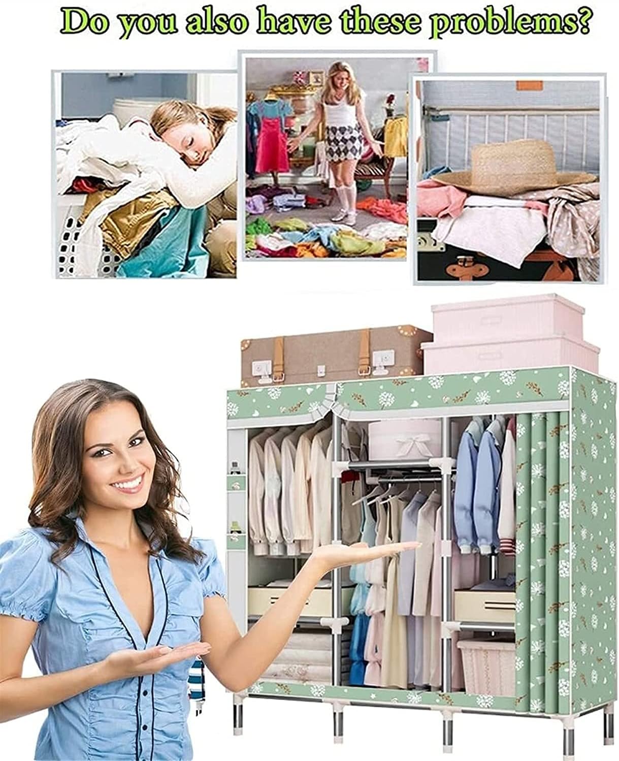 Welcome to my store! The portable wardrobe has a lot of space for you to store a lot of things, and the portable wardrobe is easy to assemble, disassemble and reassemble. You can store a lot of folded clothes or hang coats to keep your clothes in order. Easy to Use and Easy to AssembleSturdy ConstructionEasy to CleanSpacious Storage SpaceSimple Yet Stylish Look, Practical Home Temporary Niture, Keeping Your Home TidySpecifications:Fabric Material:Da ClothConnector Material: Pp Plastic PartsPipe Material:Galvanized Steel(25Mm)Product Size: 53" X17.7" X 66" (128X45X168cm)Tipe:after the Plastic Parts Are Soaked in Boiling Water for One Minute, the Installation is More Convenient.the Cut Surface of the Pipe is Dangerous, Please Do Not TouchPlease Confirm If Some Parts Are CompletePlastic Fittings, This Long Mouth is All Installed DownwardsPackage Content:1Xcloset WardrobeAfter-sales service:If you have any questions, please send us an email, we will reply to you within 24 hours and provide you with the best solution.