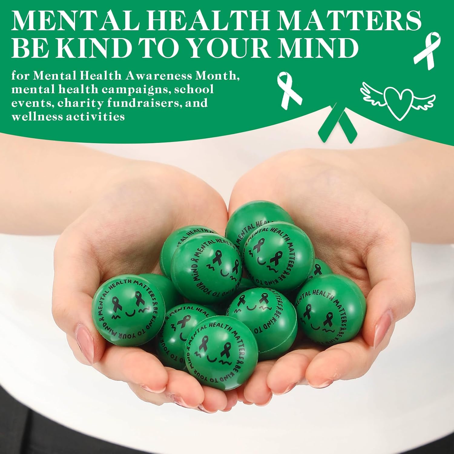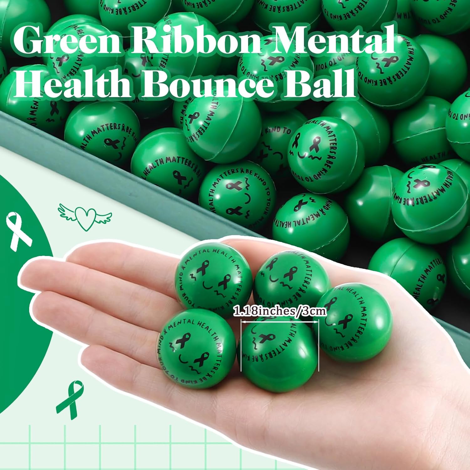 Features: Promote Positivity and Awareness with Green Ribbon Bouncy Balls: These green ribbon-themed bouncy balls are a fun and meaningful way to support mental health awareness. Designed for Mental Health Awareness Month, school activities, and wellness events, they help spread positive messages while offering simple stress relief through play Ideal for counseling offices, giveaways, and community programs, these balls encourage engagement without making medical claims. A small item with a big message—support awareness, positivity, and well-being in an approachable way Specifications: Material: rubber Color: red Size: 1.18inches Package includes: 200 x Mental health bouncing ball Notes: Manual measurement, please allow slight errors on size. The color may exist a slight difference due to different screen displays.