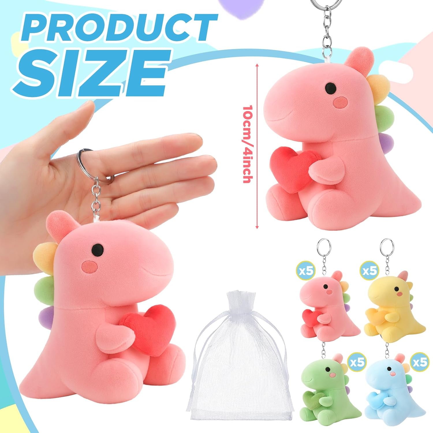 Features: Themed collection potential: With 20pcs identical dinosaurs, this set enables themed gift giving and coordinated party decorations. The consistent design creates visual impact when displayed together, while allowing each recipient to enjoy the same quality item Enhances festive atmosphere The Valentines Day themed holding heart design of the dinosaurs helps enhance the festive atmosphere. When placed at Valentines Day parties or as home decor, the stuffed animals add a romantic and cute touch. They also work well with other Valentines Day decorations, creating a cohesive and joyful holiday vibe. Specifications: Material: cotton and polyester Color: multicolor Size: Dinosaur heart : 4.72 inches/ 12 cm Organza bags: 5.91 x 7.87 inches/ 15 x 20 cm Package includes: 20 x Dinosaur heart stuffed 20 x Organza bags Notes: Manual measurement, please allow slight errors on size. The color may exist a slight difference due to different screen displays