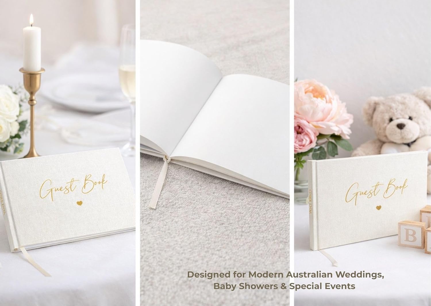 🤍Wow your guests with this stylish & affordable linen guest book! The perfect must-have keepsake for any special event. 🤍Perfect for weddings, birthdays, bridal showers, baby showers, graduations, anniversaries, engagements and much more! 🤍 Created with quality linen in 4 stunning colours to suit any event or theme with a beautifully designed first title page for extra personalisation. 🤍 The perfect size dimensions: 28cm x 20cm matched with 40 pages(80 front to back) pure white blank pages 🤍 Loads of space for pictures, polariods and/or special words from all of your guests