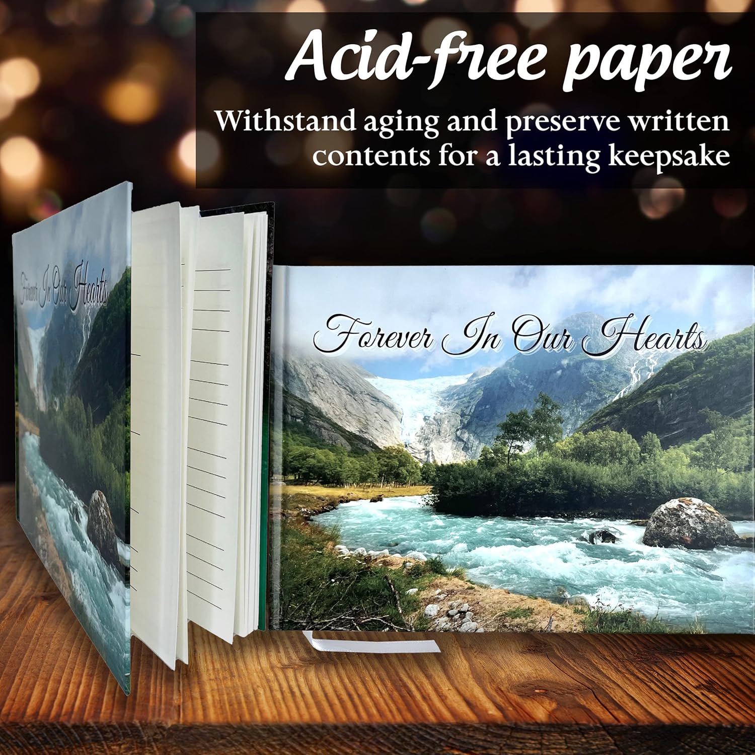Front cover of a mountaintop and another picture of a running stream. The internal sheets of the books are identical.