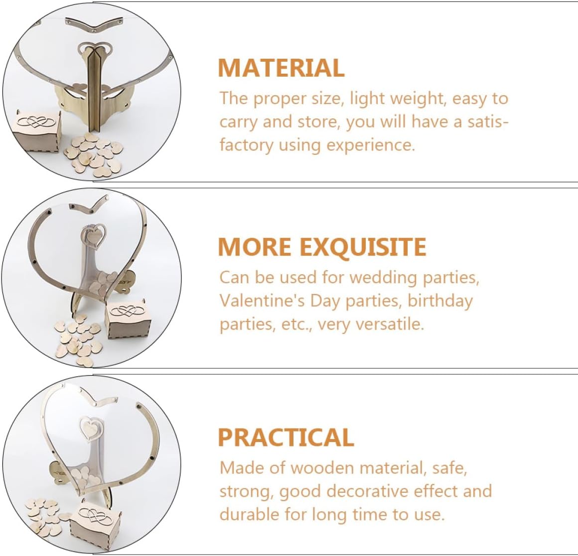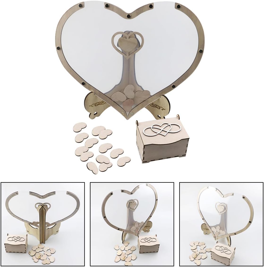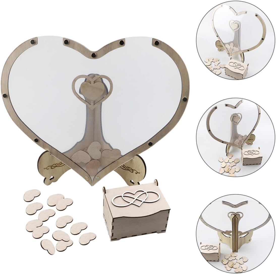 Package List 1 x wedding guest board 1 x wooden display stand 80 x wooden small hearts(4.2cm) 1 x storage case Characteristics - Size: 38.00X32.00X16.00cm/ 14.93X12.58X6.29inch Desktop Guestbook for Wedding. - Material: wood Sign Board for Wedding. - With a stable base, it can be placed on the table smoothly and safely, and it is not easy to tipped over Wedding Guestbook. - ColorAssorted Color Heart Guestbook - Elegant and beautiful design, this wedding guest book has a heart-shaped bring you a mood Wooden Guest Book. - Can be used for wedding parties, Valentine's Day parties, birthday parties, etc., very versatile Wooden Guestbook. - The proper size, light weight, easy to carry and store, you will have a satisfactory using experience Wedding Guest Book Alternative. - Made of wooden material, , strong, decorative effect and for long time to use Wedding Guest Sign Board.Goods InformationWooden Guest Book Made of wooden material, , strong and .Heart Guest Book Featuring a heart-shaped design, it is for a reception desk at a wedding to share the joy with your guests.Delicate Guestbook This wedding guest book is suitable for weddings, banquets, buffet tables and various other holiday parties