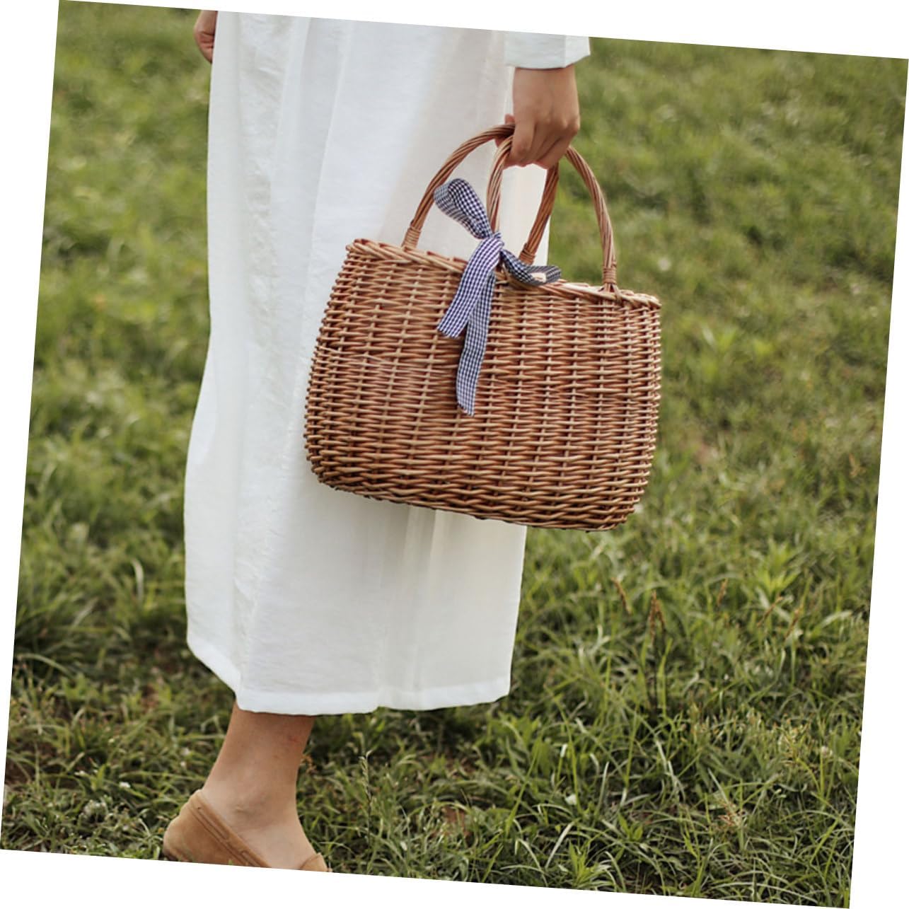 Package Include 1 x Portable Rattan Basket Characteristics -Size: 36.00X23.00X15.00cm/14.15X9.04X5.89in Food Storage Basket -Material: Rattan, cloth Handheld Basket -Color: As shown Rattan Basket - Made of high grade rattan material, hard and sturdy for long-lasting use Handwoven Basket. - Traditional hand weaving design, natural and healthy, can rest assured to use Weaving Storage Bin. - It can be a storage basket, garden flower basket, or as a flower pot, with a hand-woven texture, placed at home, it is a landscape Household Basket. - Vietnamese style woven storage basket, full of rural style. A great home decoration Wedding Flower Basket. - Multi-functional storage container, it is not only a rural plant basket, but also a simple storage basket for placing sundries, food, toiletries, etc Handmade Basket.Goods InformationFood Storage Basket A wonderful helper for household decoration.Flower Container The simple basket is for adding touch and some natural color to your interior.Weaving Basket storage container for fruit, flower, etc.Household Basket Natural and simple design, very and