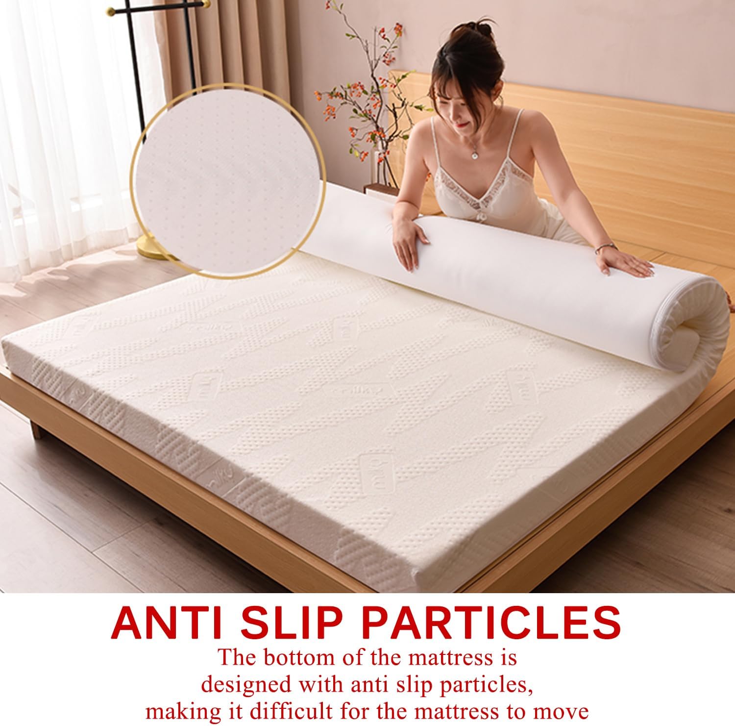 Futon mattress topper made of high-quality high-density memory foamThe outside is a dust-proof mattress cover made of knitted fabricVery suitable for use in hotels or your bedroom student dormitoriesAllowing you to fully enjoy a comfortable sleepFabric:Knitted fabricProduct filling: high-density memory foamWhether it can be machine washed : The filling material cannot be cleaned, and the knitted dust-proof mattress cover can be machine washedColor: white,gray,blueThickness: about 5cm(2in)/about 7.5cm(3in)/about 10 cm(3.9in)(Note: Due to compressed transportation, the thickness of the mattress received may differ from the thickness marked on the measurement)Size:90*190cm(35*75in)90*200cm(35*79in) TWIN100*200cm(39*79in)120*190cm(47*75in)120*200cm(47*79in) FULL135*190cm(53*75in)135*200cm(53*79in)150*190cm(59*75in)150*200cm(59*79in) QUEEN180*200cm(71*79in) KING180*220cm(71*87in)200*200cm(79*79in)200*220cm(79*87in)Package includes: only floor futon mattress topper * 1(Pillow not included)Notes:Due to the light and screen setting difference, the item's color may be slightly different from the pictures.Please allow slight size and weight differences due to different manual measurements.Since the package is transported using vacuum compression, please pat the mattress gently in a ventilated environment after receiving the package. Wait 48 hours for the mattress to slowly regain its fluffiness (can be aired, not washed)