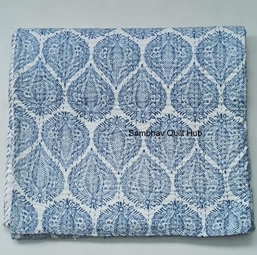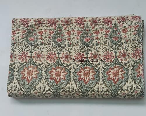 This Hand blocked Floral print design Queen size Kantha quilt is hand made & 100% cotton. Each of these unique & beautiful quilt takes approx 7-10 days to make. This is hand made & hand dyed unique Handmade & Queen Size Kantha Quilt is symbolic of Indian heritage. This piece is Made by Original Indian kantha work Artisan. This piece of art is fully reversible & made using 100% cotton. This has different & random combination of colours & pattern which is making it more unique. Handcrafted in Rajasthan rural village bikaner its located in India & Pakistan border area. Can be used as: 1. Quilt 2. Bed spread 3. blanket 4. Bed cover 5. You can be creative: Lot of people are using this in curtains, making begs etc. Size : Queen size - 90 x 108 Inches/ King Size