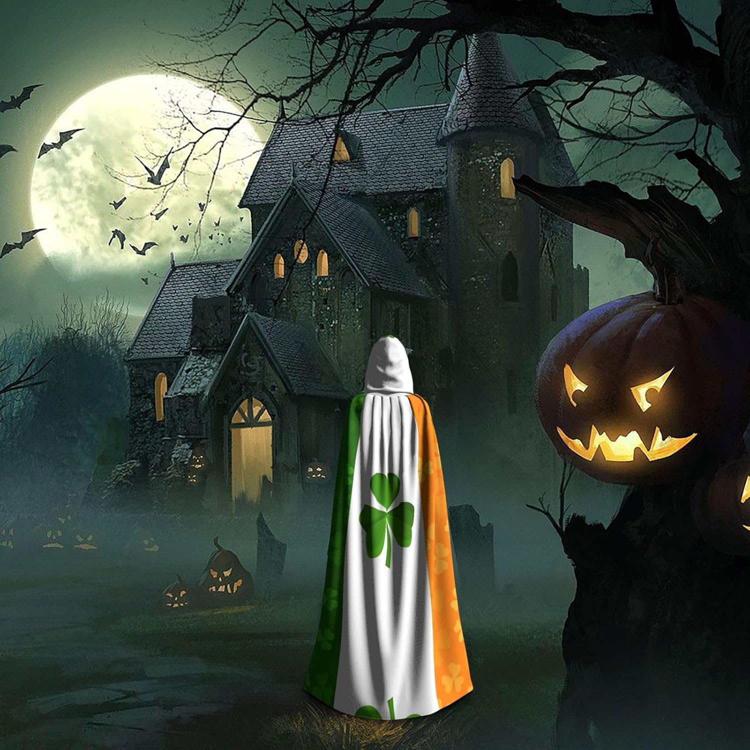 Irish Flag Elevate Your Costume Game With The Unique Darkness Poncho Shawl, A Versatile And Customizable Wearable Blanket Designed For Women. This Poncho Shawl Is Perfect For A Variety Of Occasions, From Halloween Parties And Cosplay Events To Stage Performances And Themed Gatherings.Customized Design: Each Poncho Is Meticulously Designed With Full-Print Patterns, Allowing You To Express Your Unique Style And Stand Out In The Crowd. Whether You'Re Dressing Up, This Poncho Will Add A Touch Of Personality To Your Ensemble.Comfort And Durability: Crafted From Polyester, This Poncho Offers A Soft, Non-Itchy Feel That Ensures Comfort All Night Long. The Durable Material Is Built To Last, Making It A Reliable Addition To Your Costume Collection.Hooded And Long: The Poncho Features A Large, Comfortable Hood And An Extended Length, Providing Extra Coverage And Warmth. The Added Length And Hood Make It Perfect For Chilly Evenings, Ensuring You Stay Cozy And Stylish. This Poncho Is Also Ideal For Renaissance Fairs, Comic Conventions, And Any Other Event Where A Striking And Unique Accessory Is Needed.Easy Care: This Poncho Is Machine Washable And Easy To Care For, Ensuring It Maintains Its Vibrant Colors And Durability Over Time. It'S A Hassle-Free Addition To Your Wardrobe That Will Keep You Looking And Feeling Great.Whether You'Re Attending A Halloween Party, A Cosplay Event, Or A Themed Gathering, The Unique Darkness Poncho Shawl Is The Perfect Accessory To Complete Your Look. Make A Statement And Stand Out With This One-Of-A-Kind, Customizable Poncho.